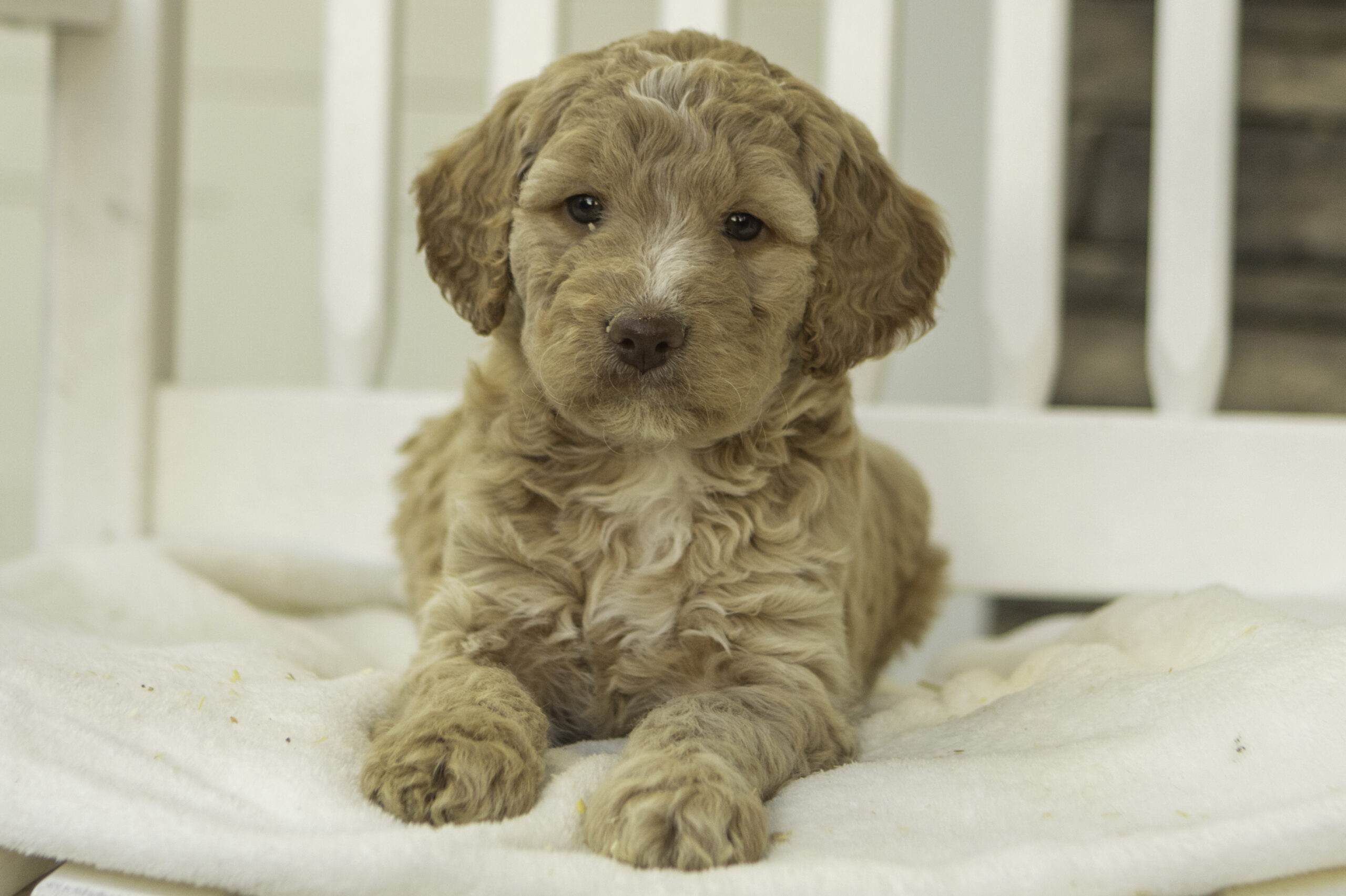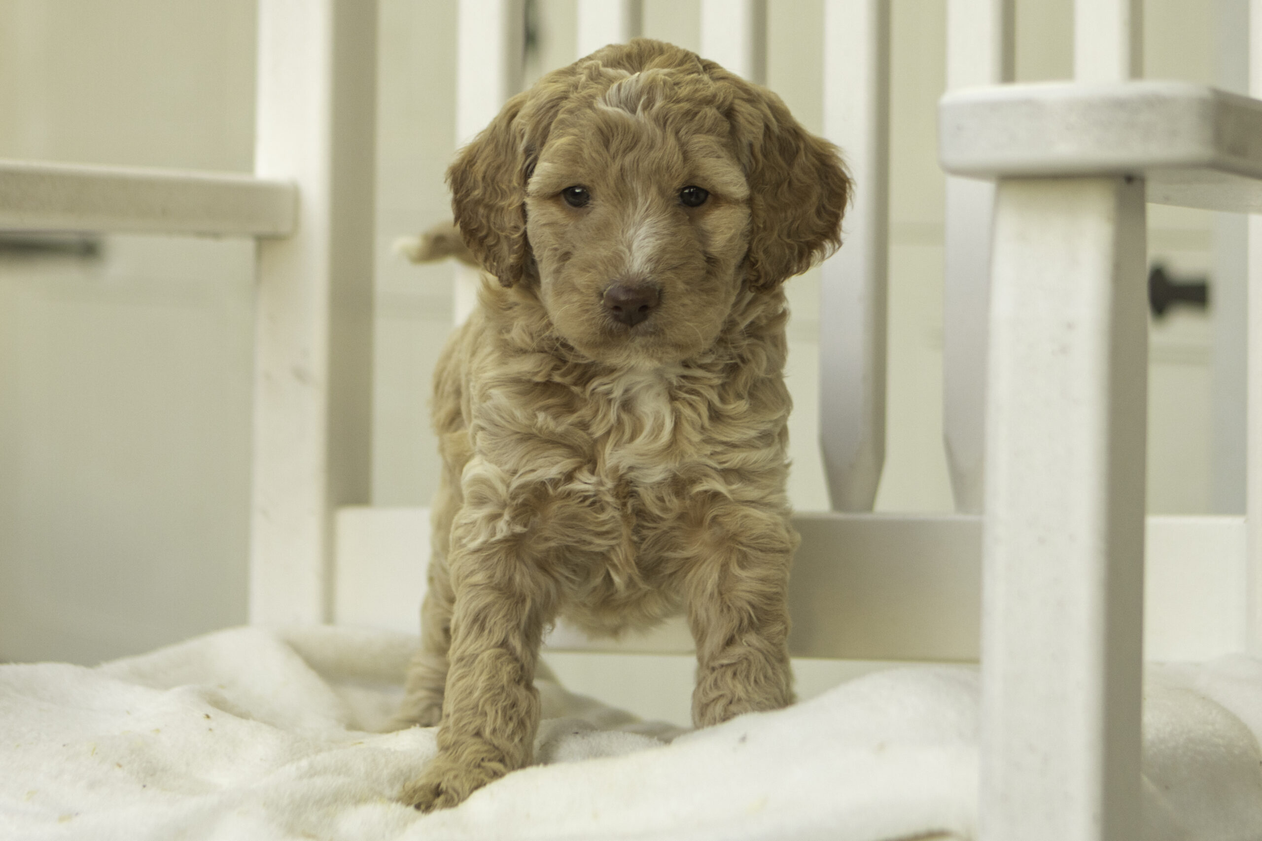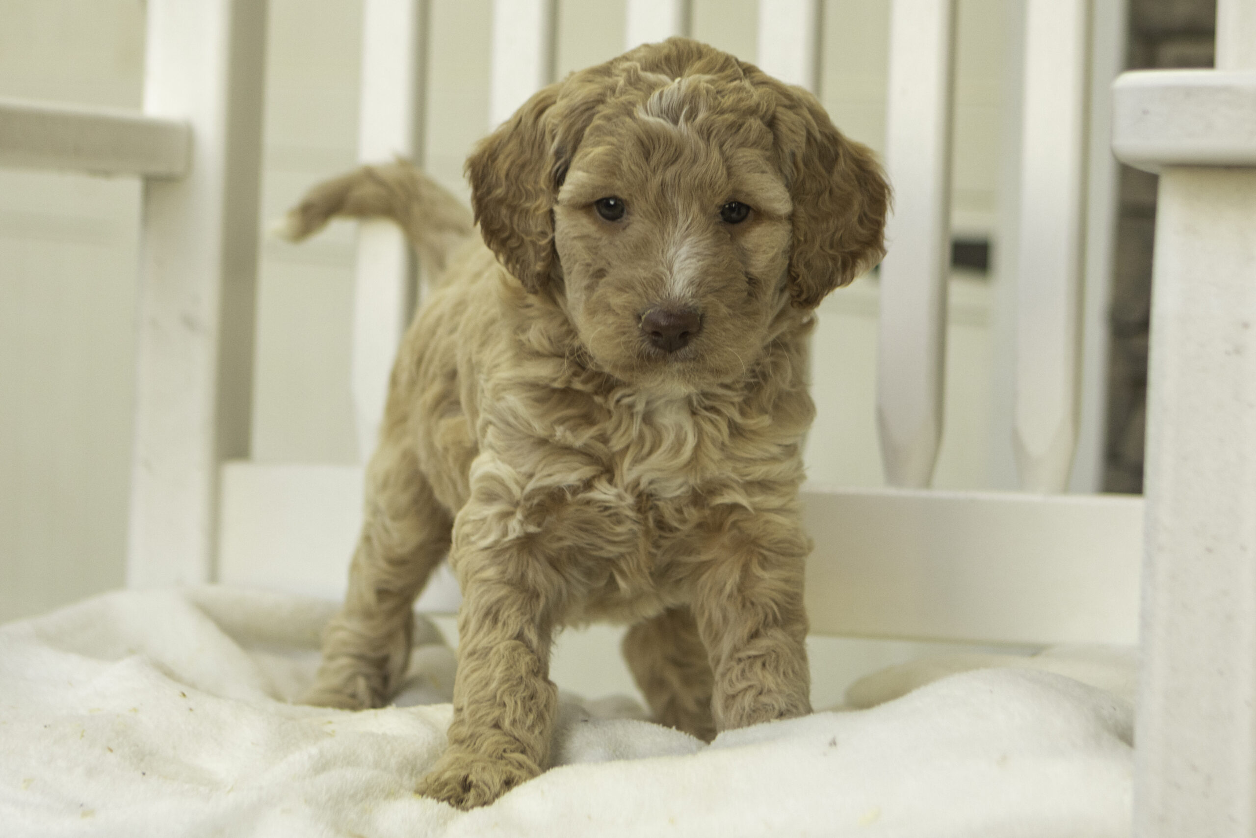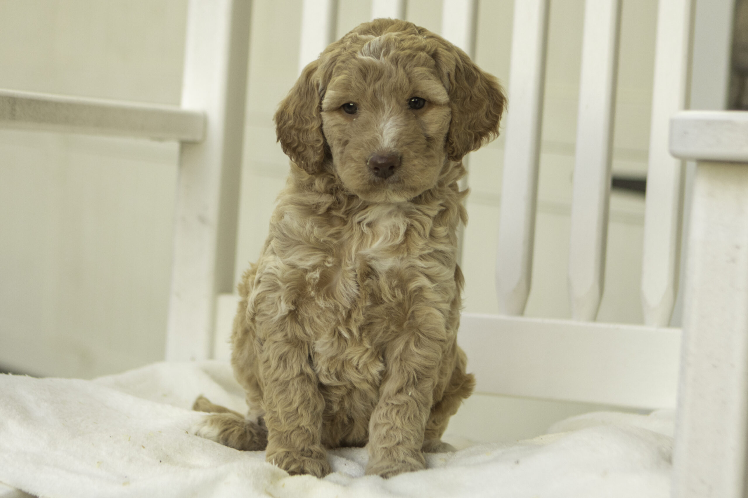 Finn is a 41lb Poodle with a gentle, thoughtful spirit. While he may come off as a bit reserved at first, his quiet curiosity quickly shines through. Once he’s comfortable, Finn reveals his sweet and loving nature. He’s a calm and steady companion who brings a balanced temperament to our program. With his refined build and kind personality, Finn is a wonderful sire who consistently passes down his soft nature and intelligence to his puppies.