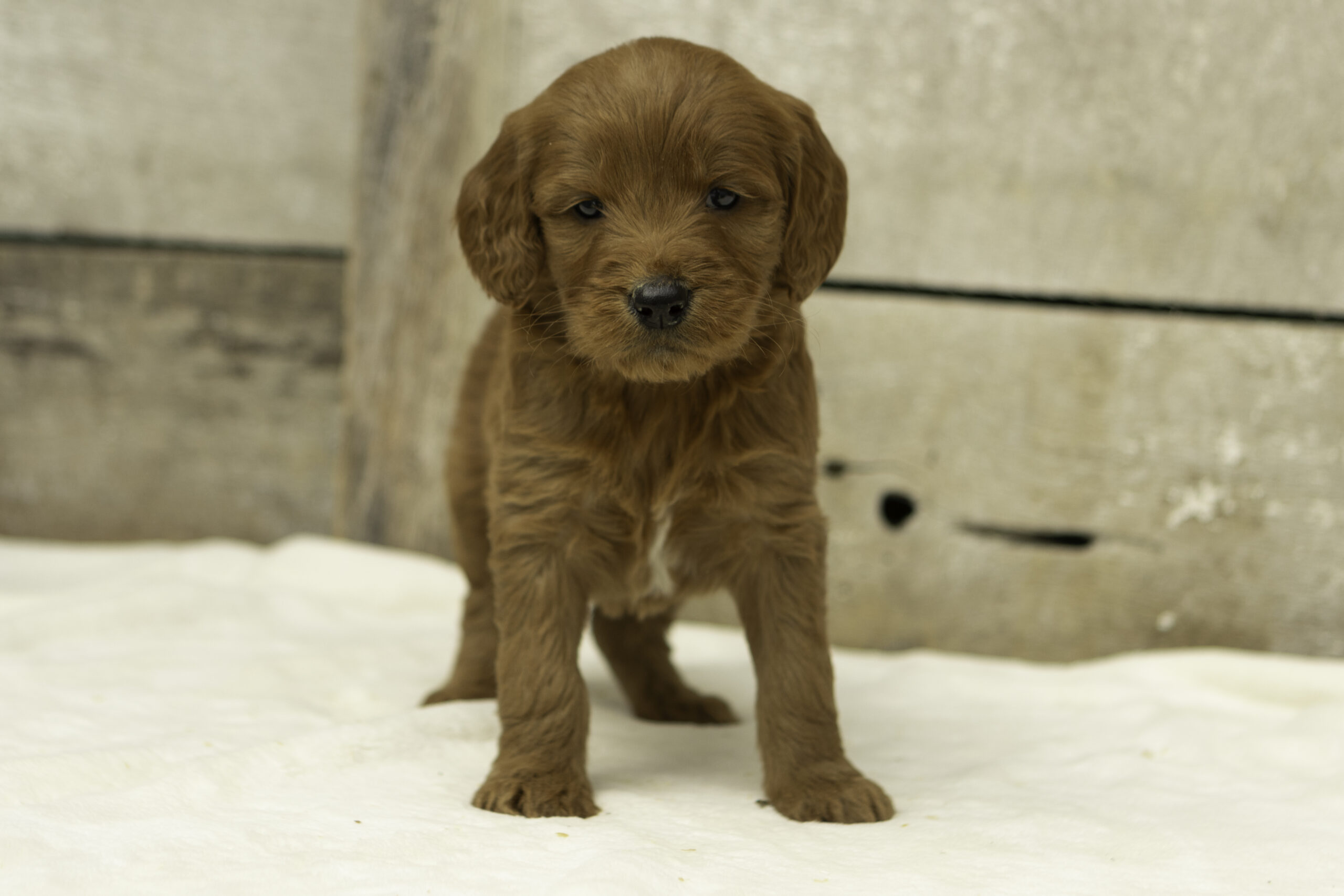 Lambo is a 45 lb Poodle with a sweet and loving nature. He’s incredibly smart and carries himself with a calm, gentle presence that makes him stand out. Though he can be a bit reserved at first, he quickly becomes affectionate and loyal with those he trusts. As a sire, Lambo brings a thoughtful and steady temperament to our program. His sire, Maserati, was imported from a renowned German kennel owned by an international judge and breeder. His pedigree includes multiple champions on both sides, with strong German and UK lineage. In Europe, Maserati is considered a Kleinpudel—also known as a Moyen Poodle—while the AKC registers him as a Standard Poodle. Kleinpudels are a medium-sized variety prized for their balanced structure and versatile temperament.
