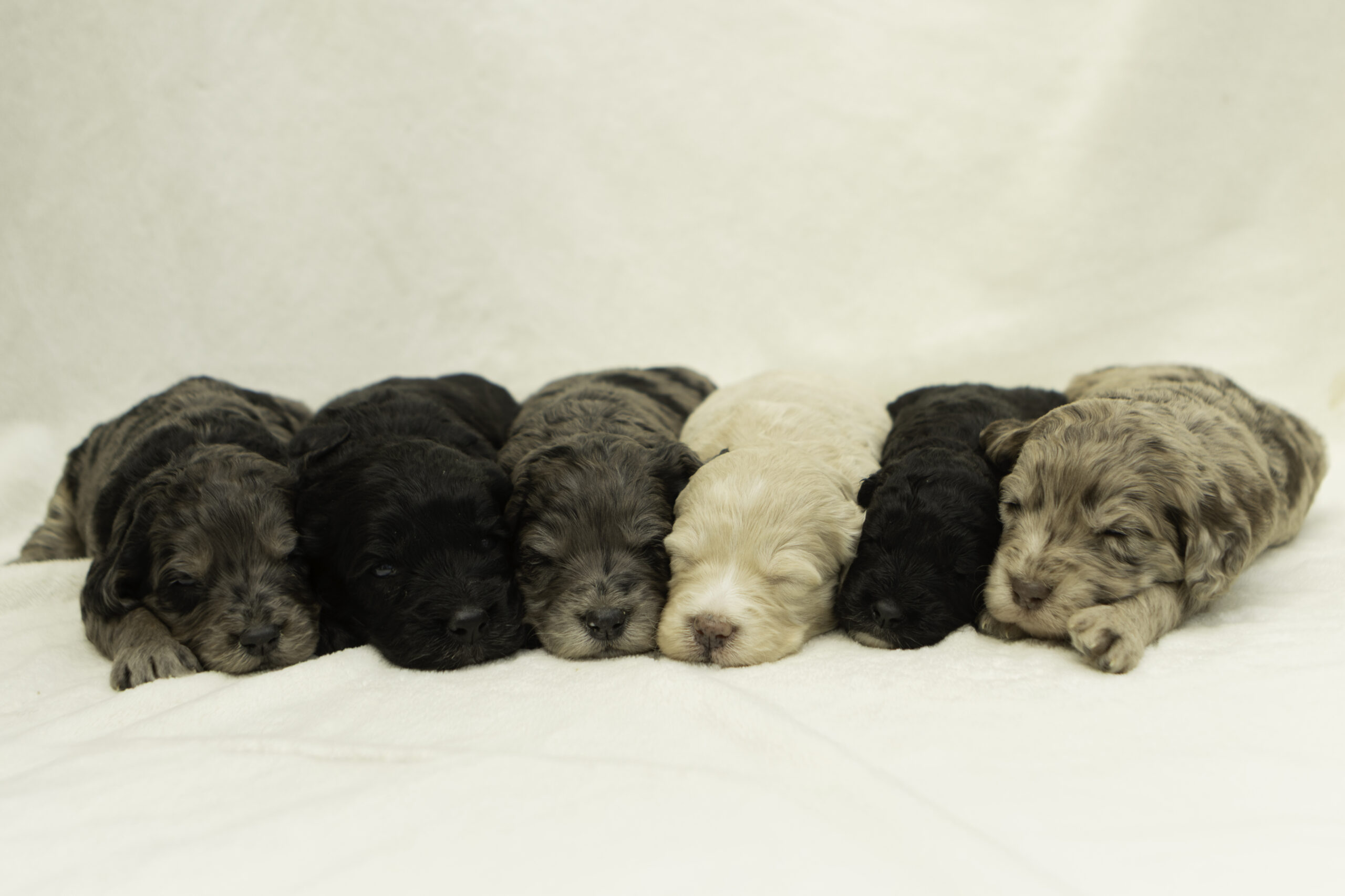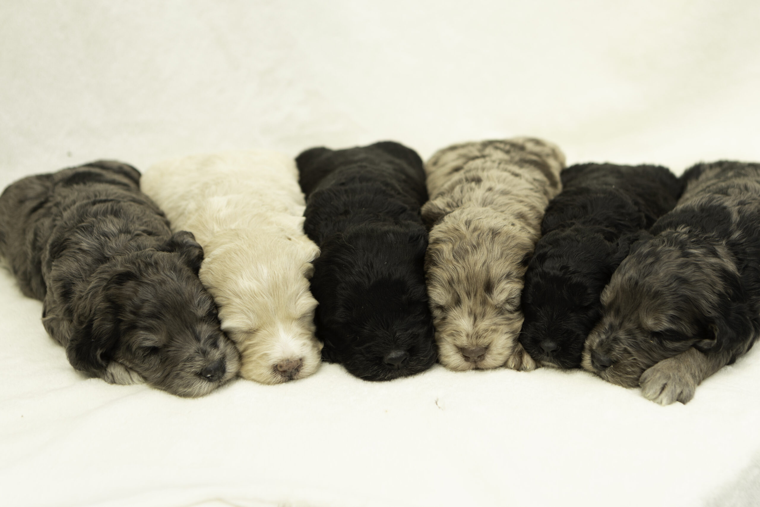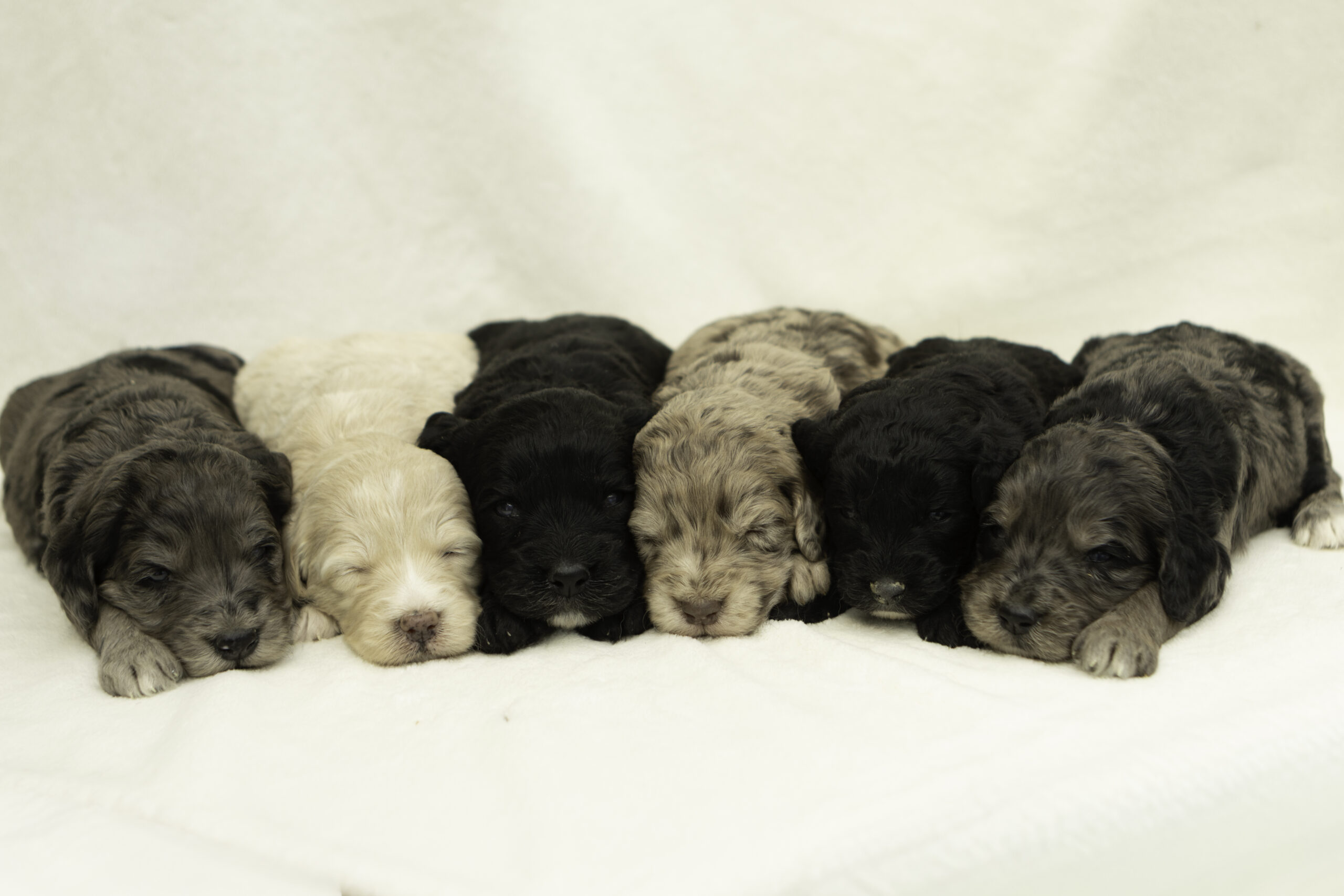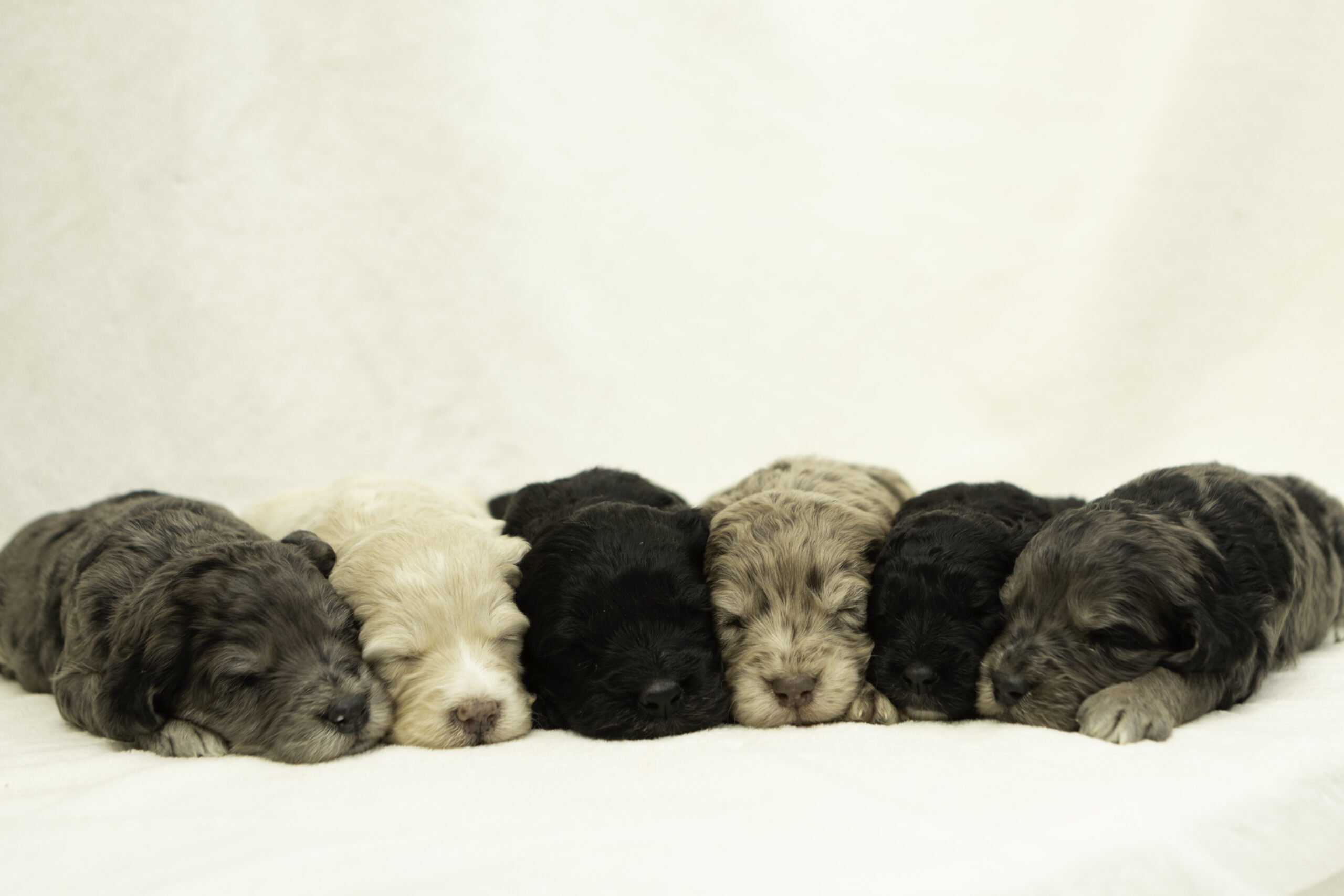 Finn is a 41lb Poodle with a gentle, thoughtful spirit. While he may come off as a bit reserved at first, his quiet curiosity quickly shines through. Once he’s comfortable, Finn reveals his sweet and loving nature. He’s a calm and steady companion who brings a balanced temperament to our program. With his refined build and kind personality, Finn is a wonderful sire who consistently passes down his soft nature and intelligence to his puppies.
