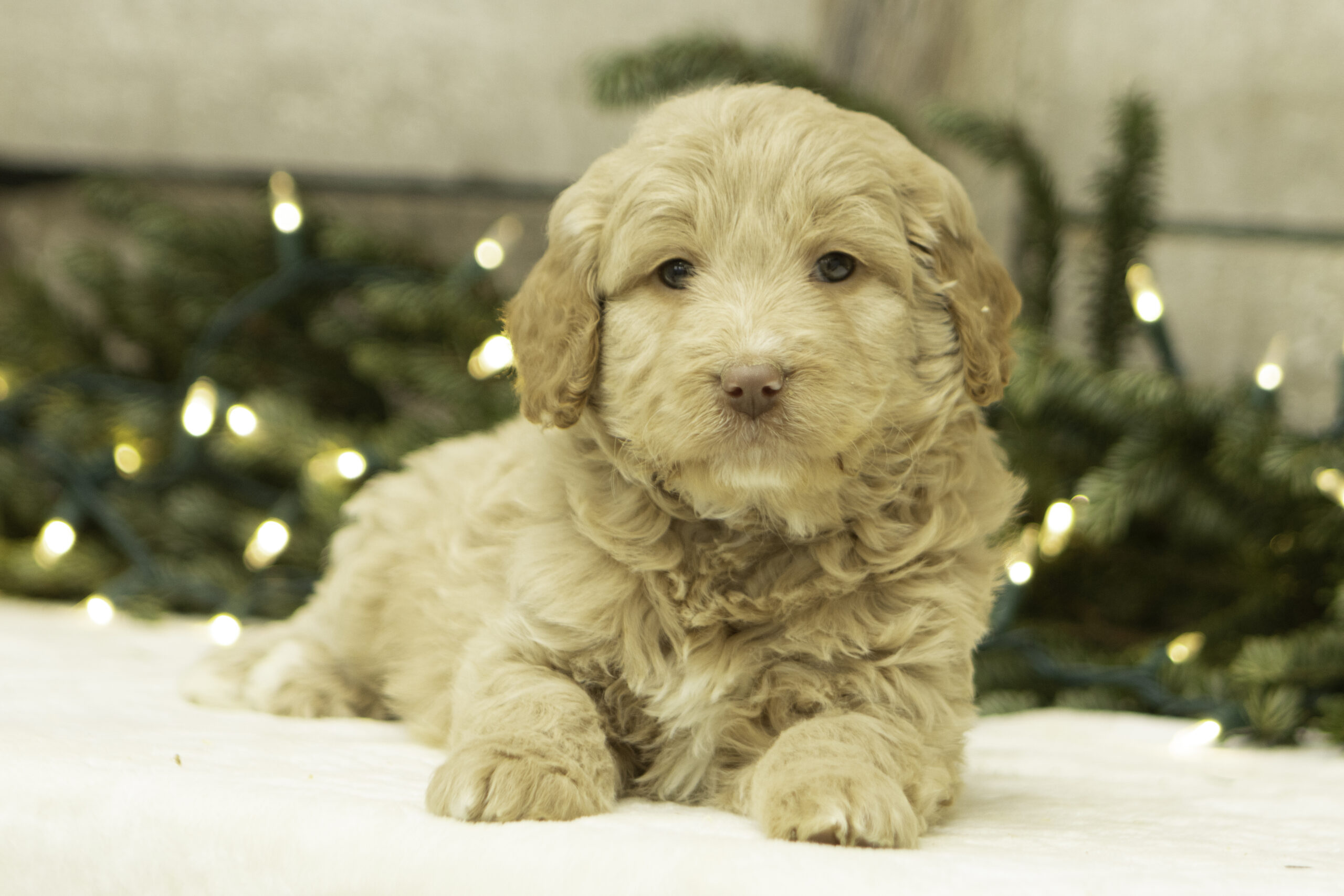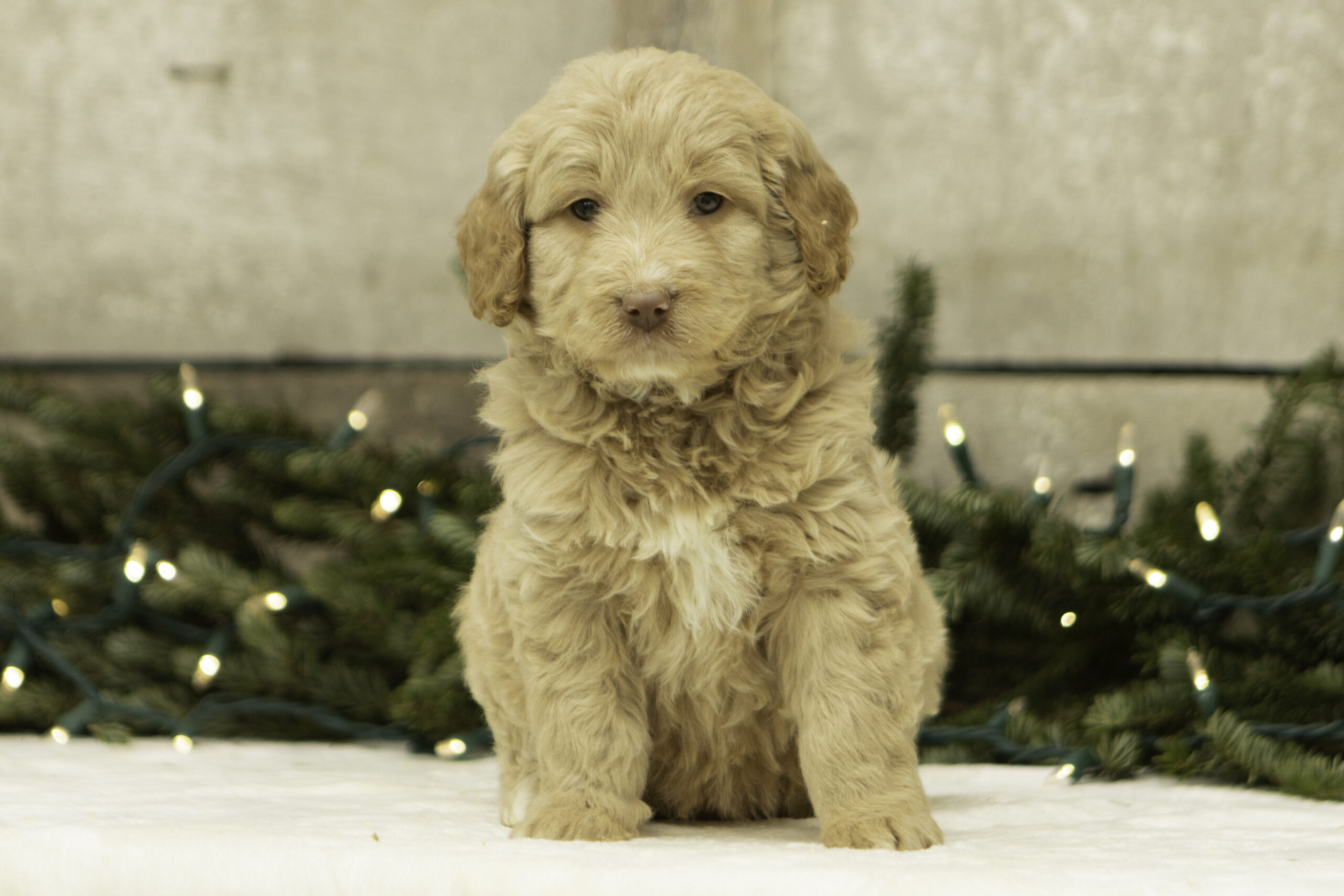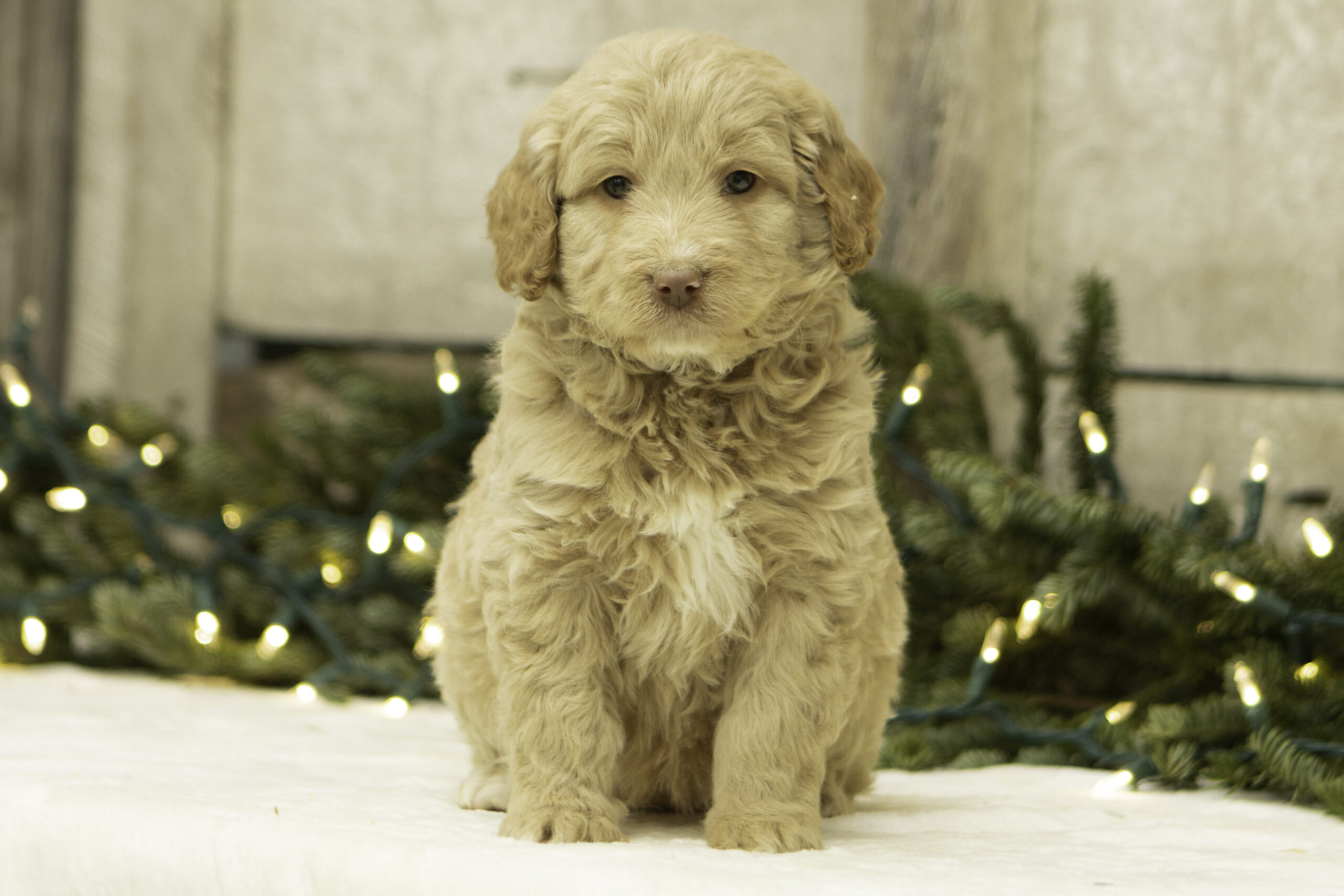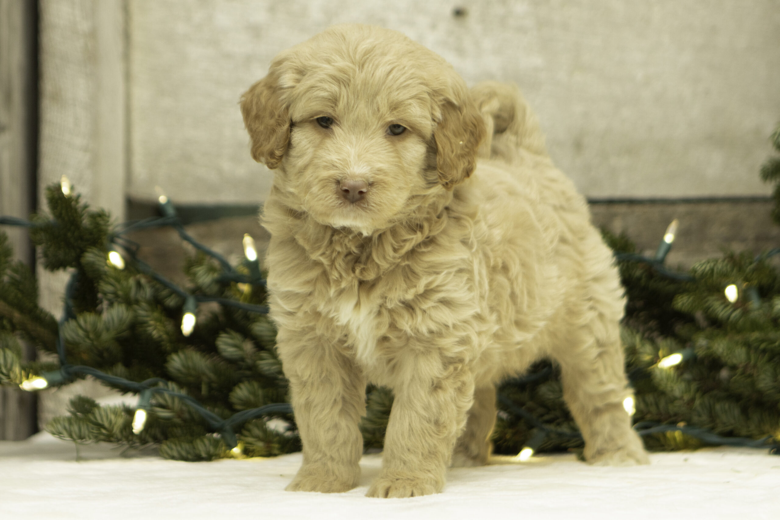 Finn is a 41lb Poodle with a gentle, thoughtful spirit. While he may come off as a bit reserved at first, his quiet curiosity quickly shines through. Once he’s comfortable, Finn reveals his sweet and loving nature. He’s a calm and steady companion who brings a balanced temperament to our program. With his refined build and kind personality, Finn is a wonderful sire who consistently passes down his soft nature and intelligence to his puppies.