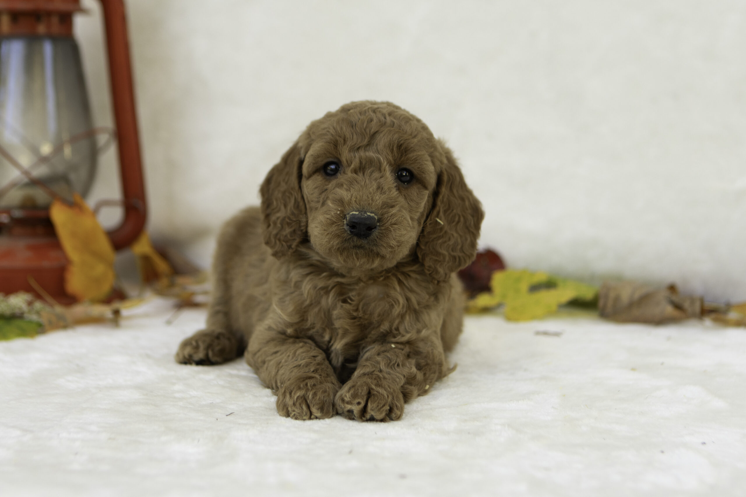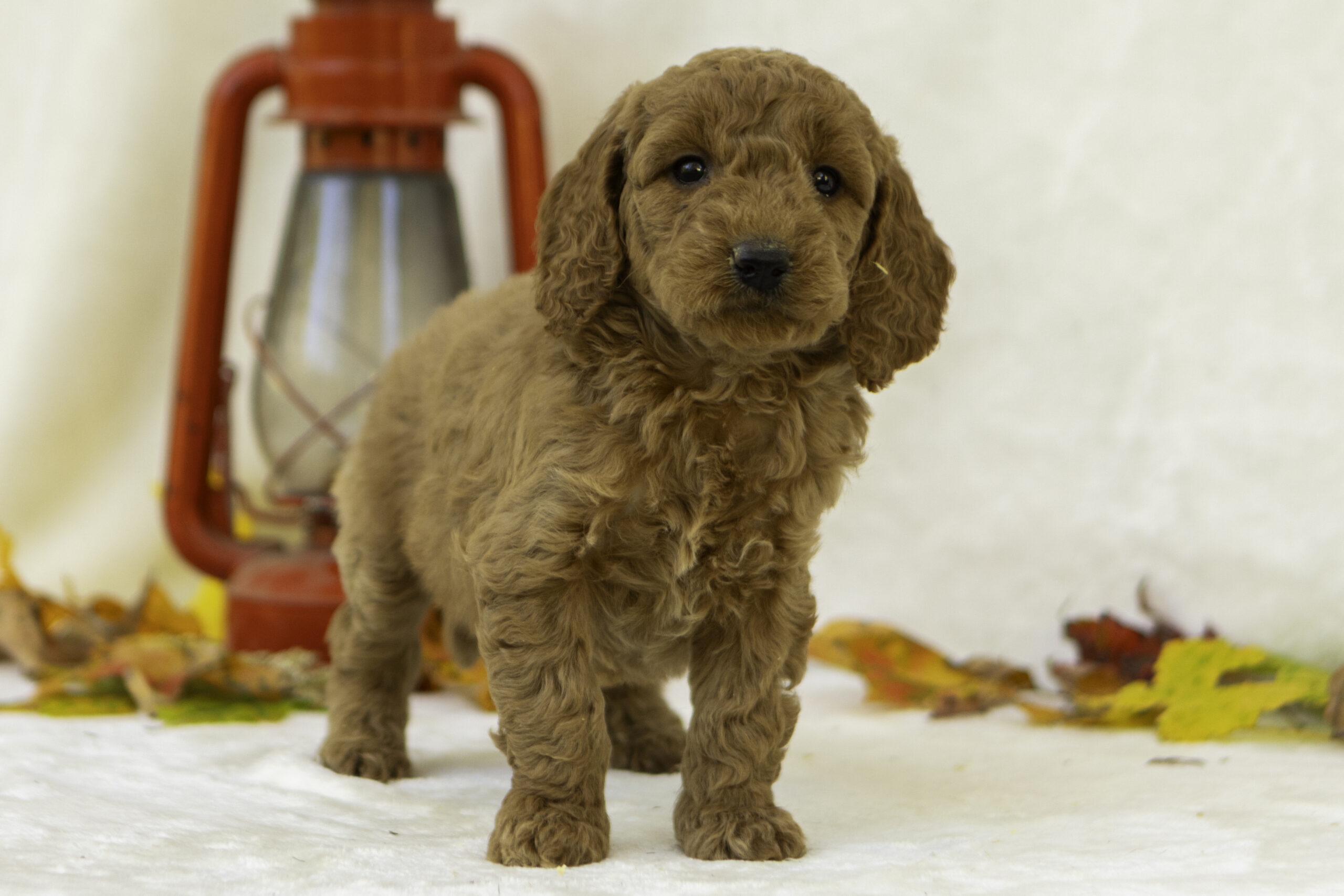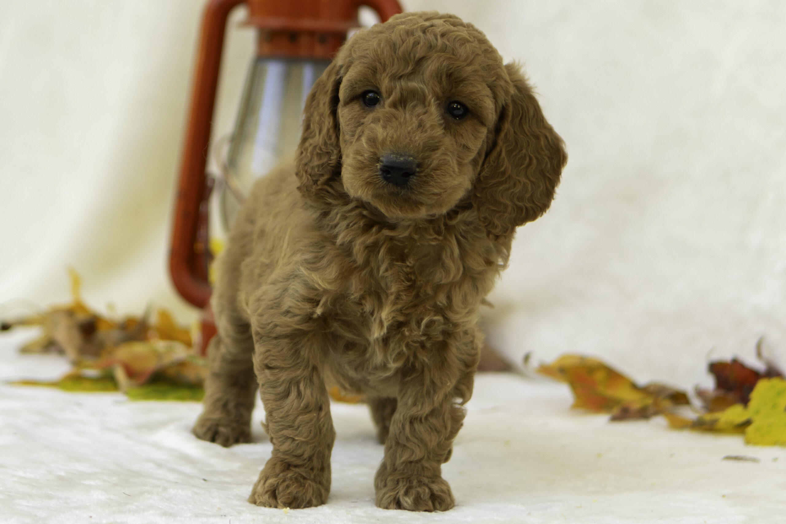 Elsa is a 45-pound apricot F1 Goldendoodle and one of our wonderful moms. She has an incredibly friendly nature and loves to greet people with a gentle lick to the hand. True to her “velcro” personality, Elsa sticks close by and is always eager to be part of what’s going on. Her affectionate, loyal temperament shines through in her puppies, who tend to inherit her loving, people-oriented personality and eagerness to bond with their families.