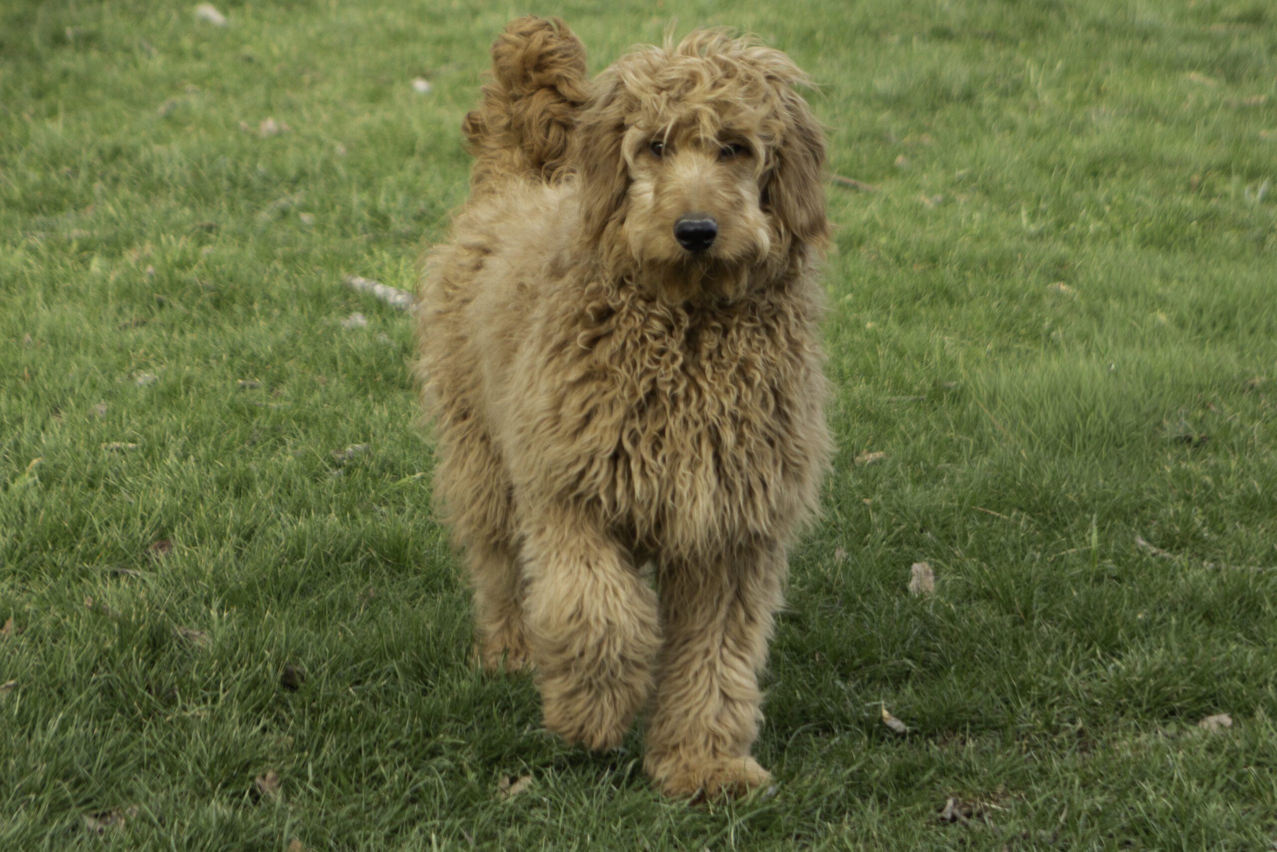 Ringo is a 31-pound dark red Moyen Poodle with an energetic and friendly personality. He loves to explore, meet new dogs, and make friends everywhere he goes. Outgoing and social, Ringo brings a playful spirit and joyful energy to every setting, while still being affectionate and loyal to his people.