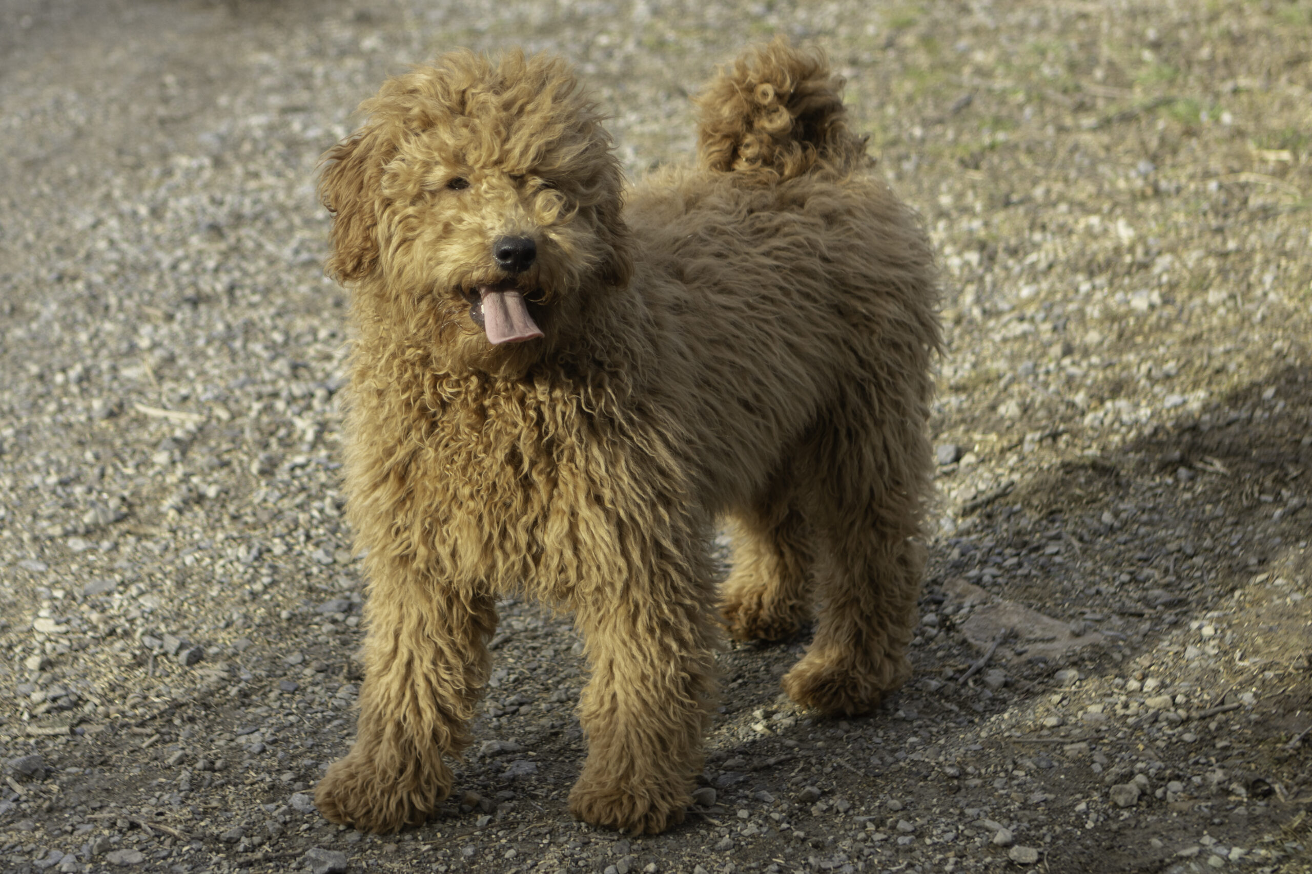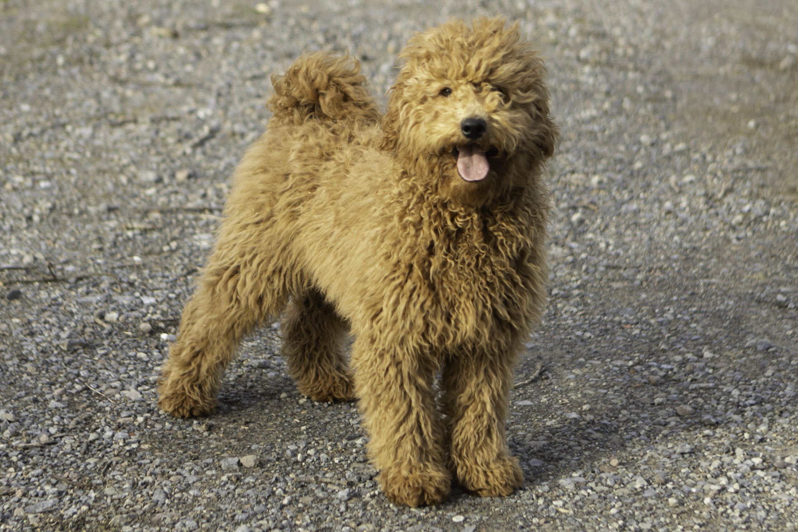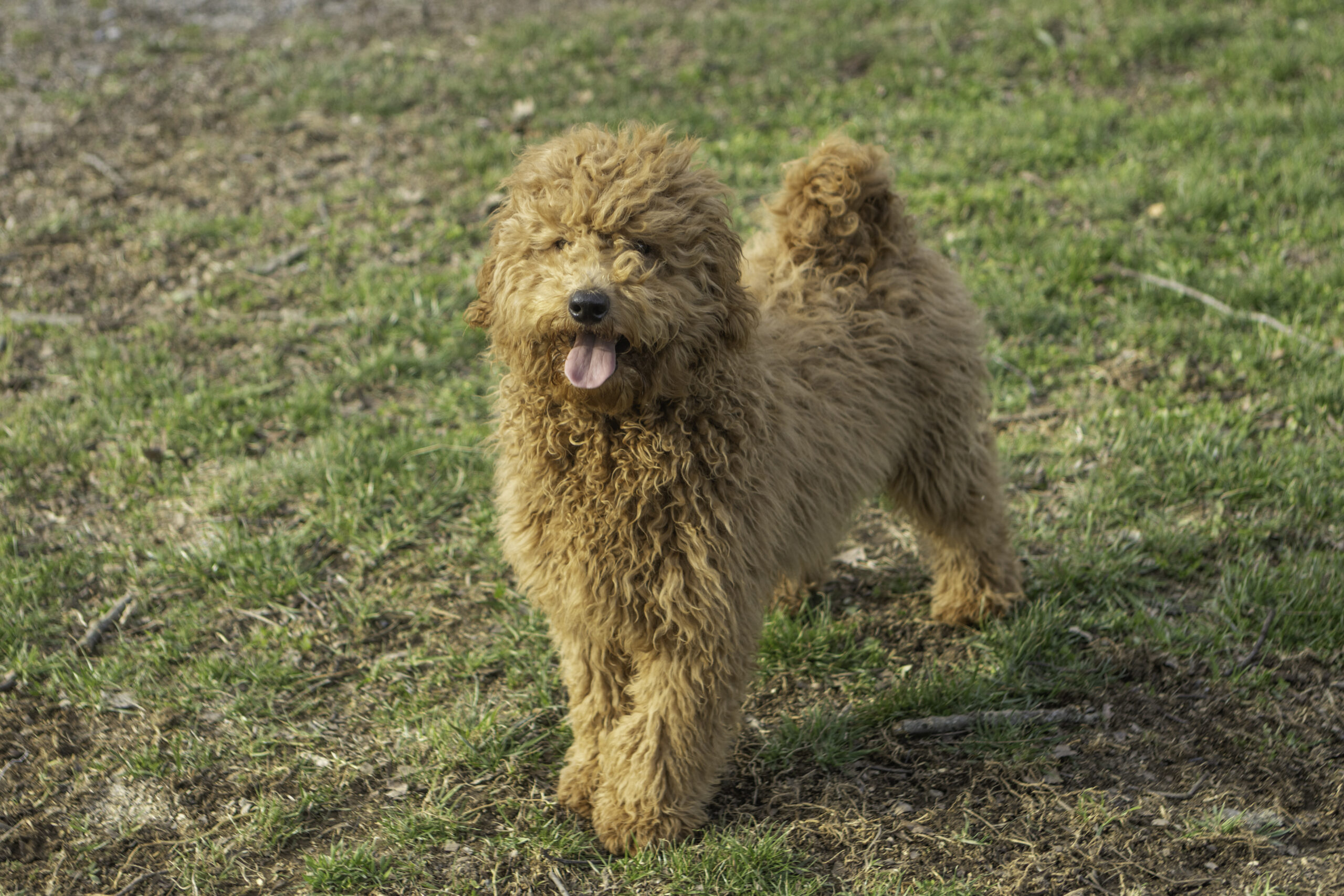 Ringo is a 31-pound dark red Moyen Poodle with an energetic and friendly personality. He loves to explore, meet new dogs, and make friends everywhere he goes. Outgoing and social, Ringo brings a playful spirit and joyful energy to every setting, while still being affectionate and loyal to his people.