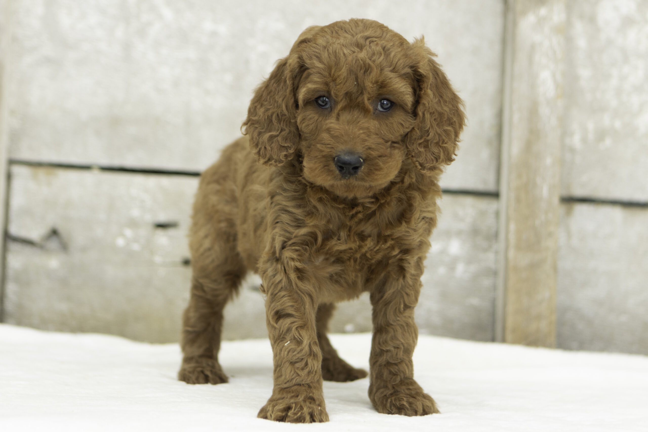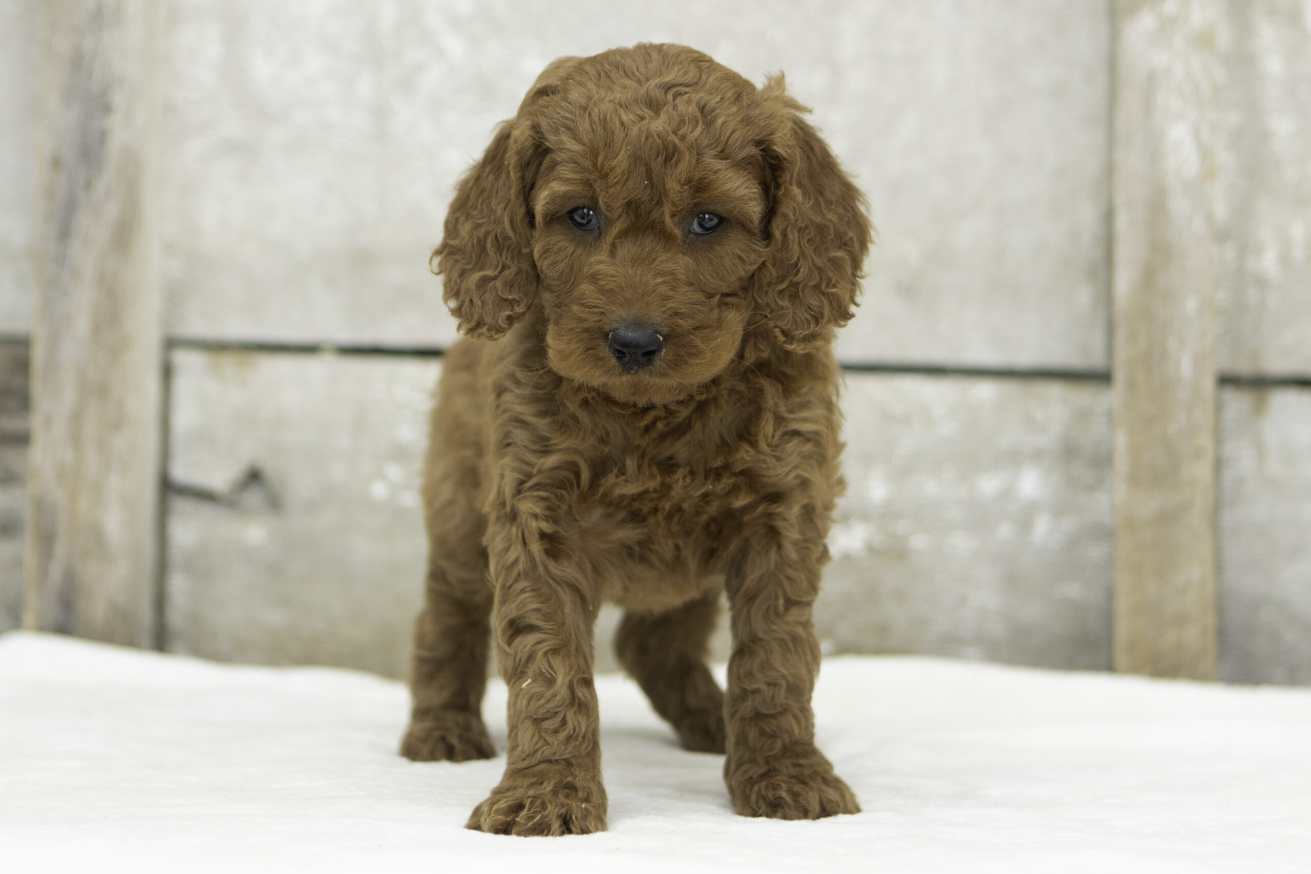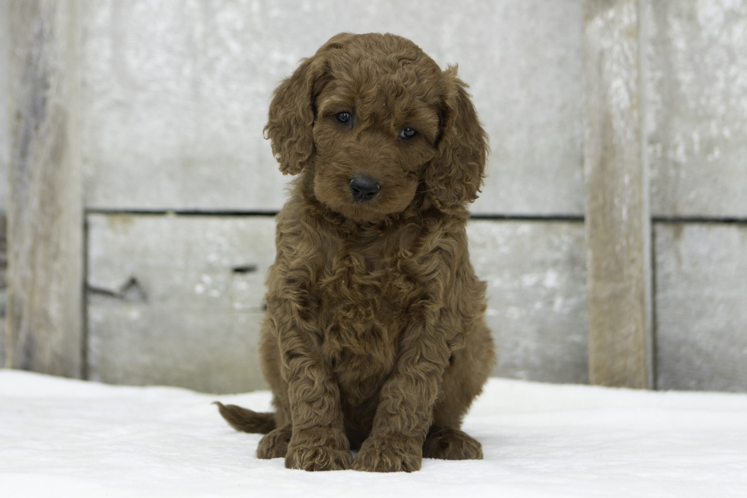 Lou is a calm and happy doodle mom weighing 51 pounds. Friendly without being overbearing, she loves to quietly hang around and offer gentle companionship. Her patient and easygoing nature shines through in the way she cares for her puppies, helping them grow into well-balanced, loving companions.