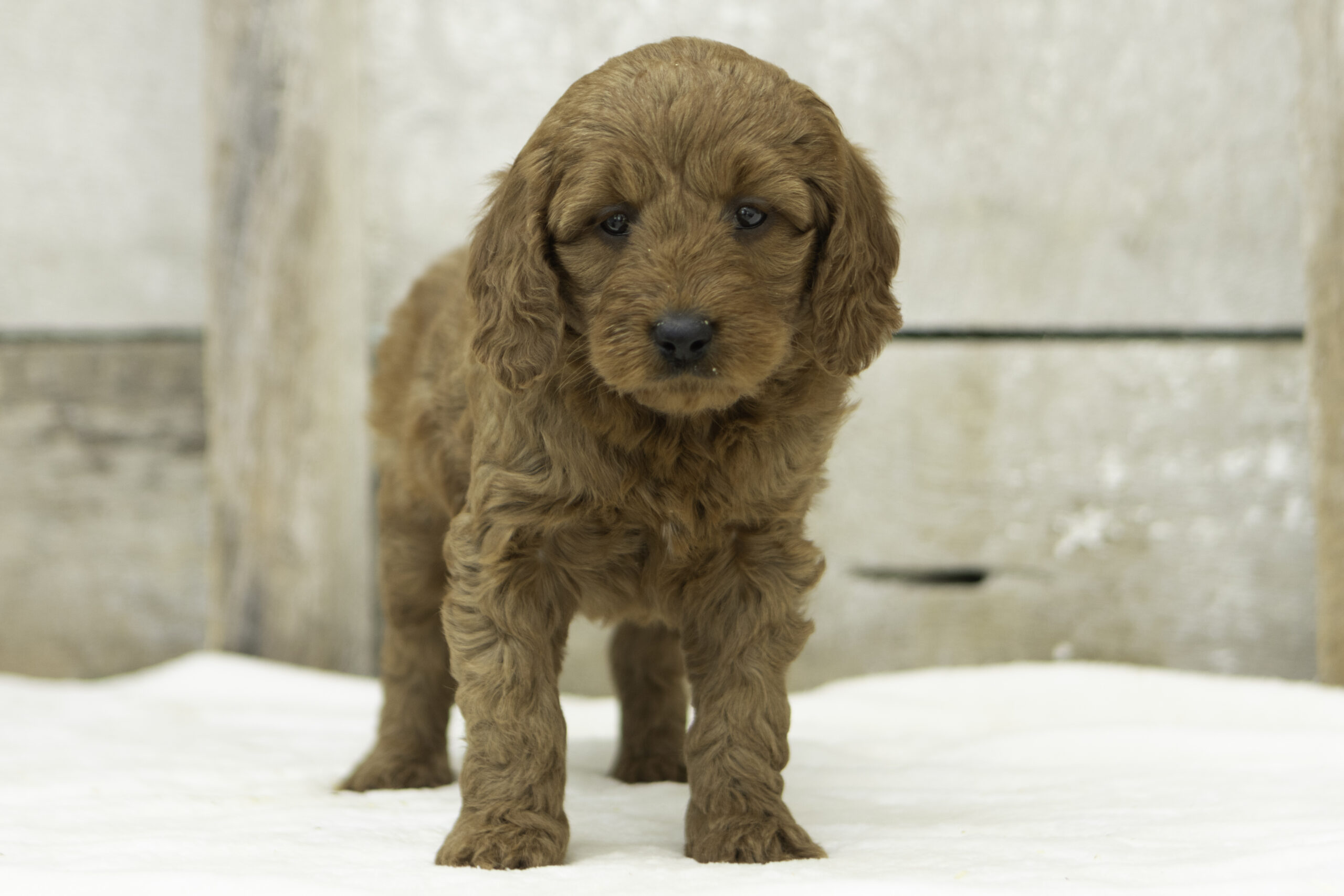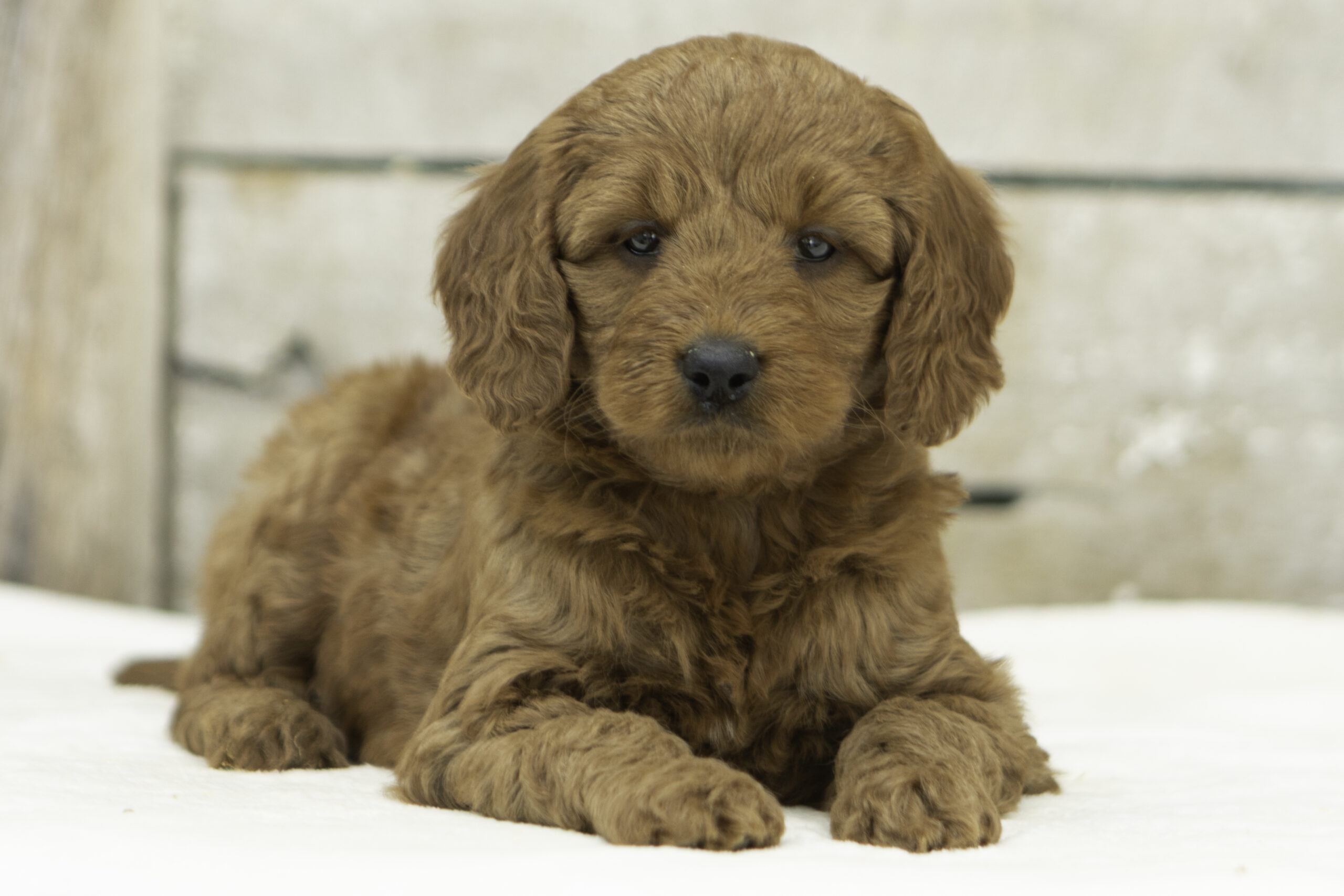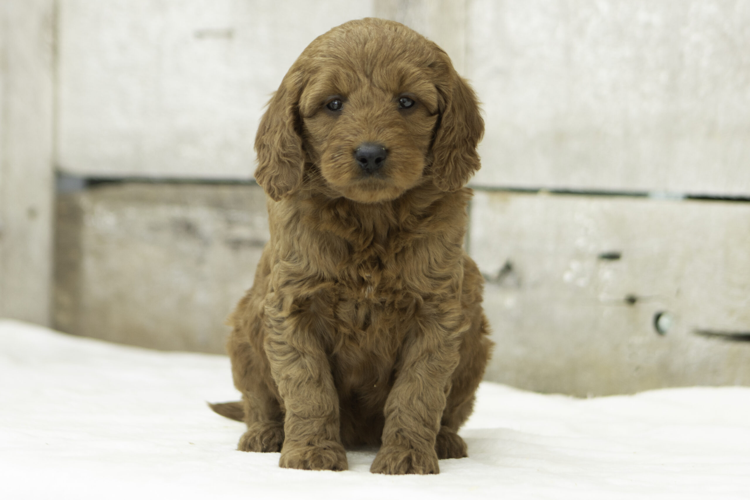 Lou is a calm and happy doodle mom weighing 51 pounds. Friendly without being overbearing, she loves to quietly hang around and offer gentle companionship. Her patient and easygoing nature shines through in the way she cares for her puppies, helping them grow into well-balanced, loving companions.