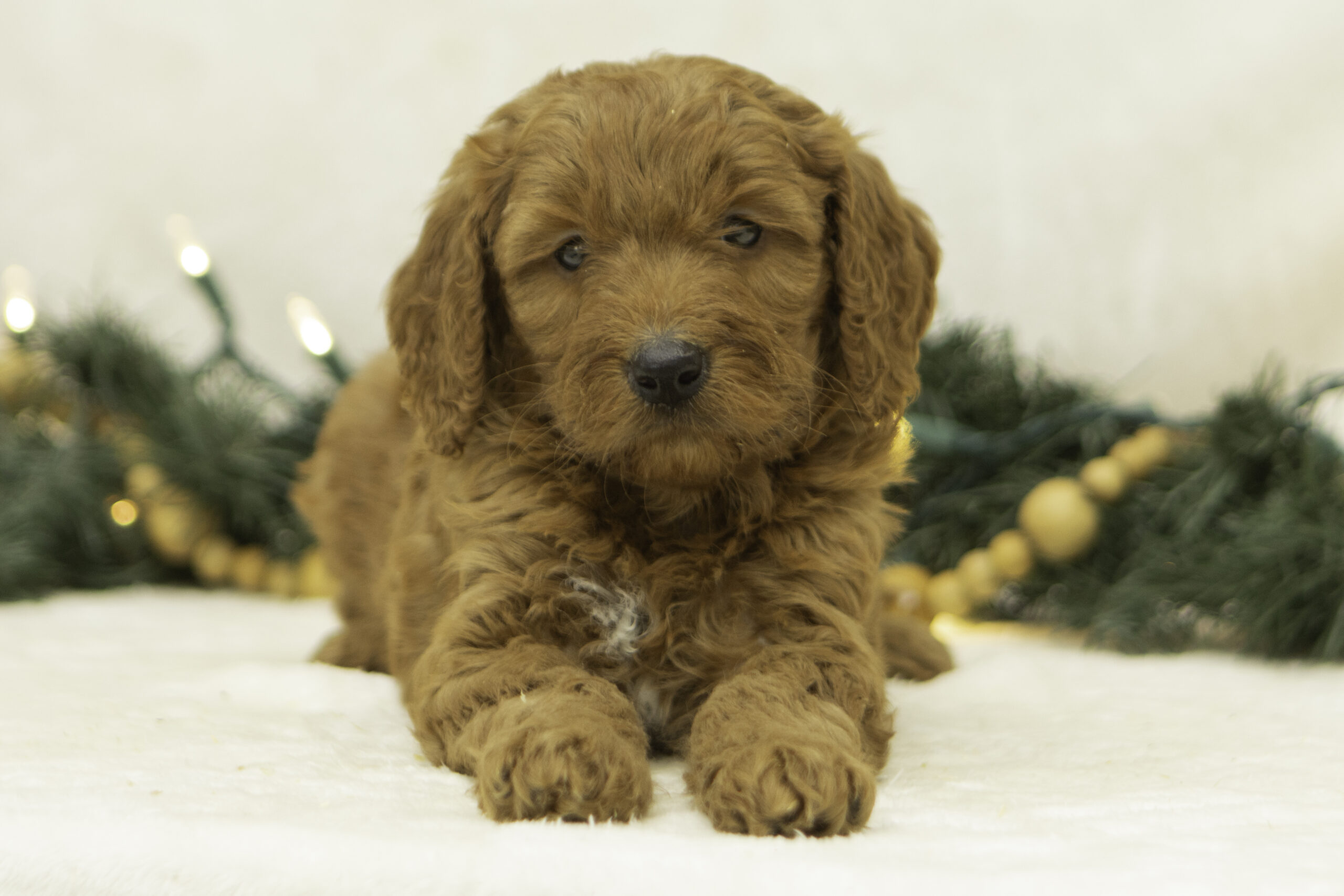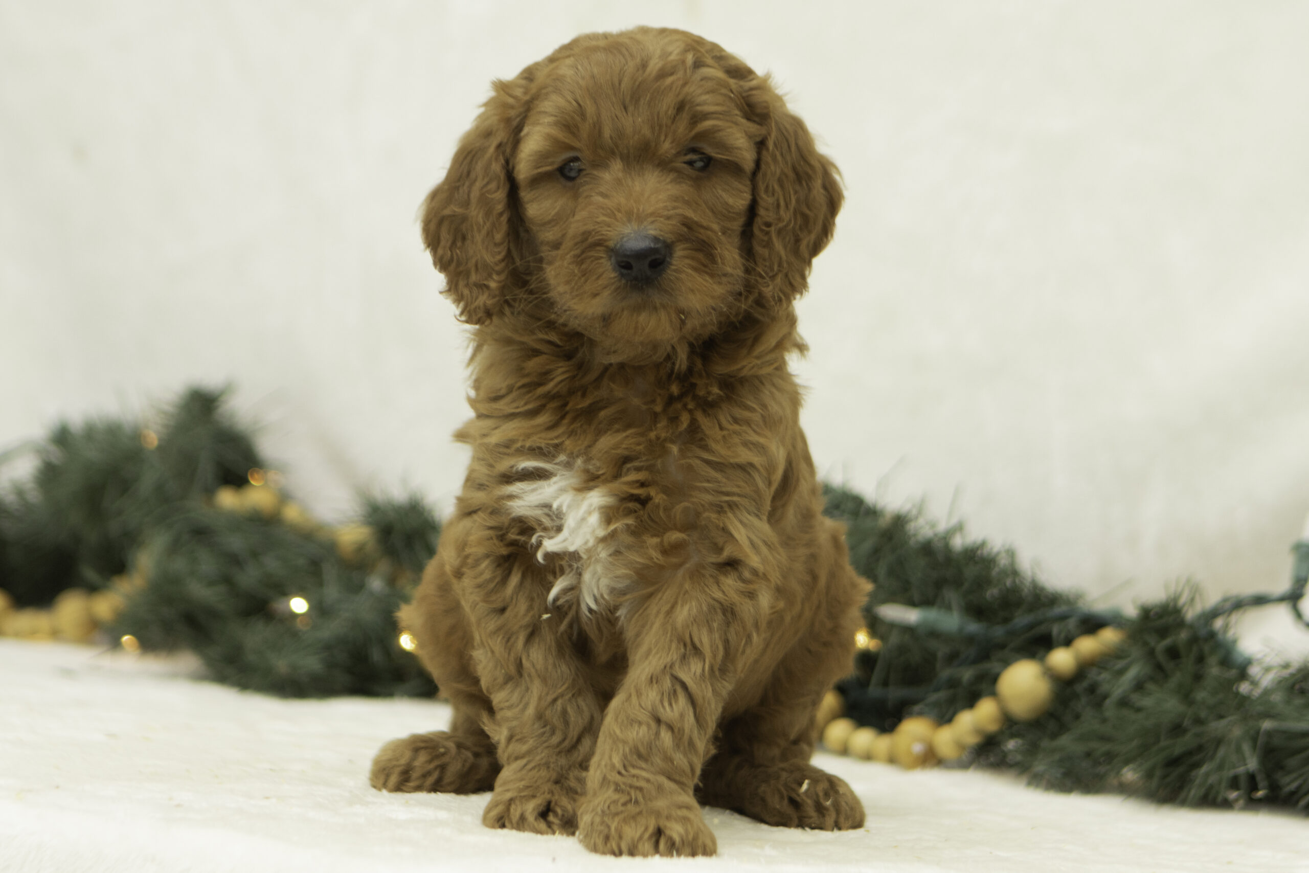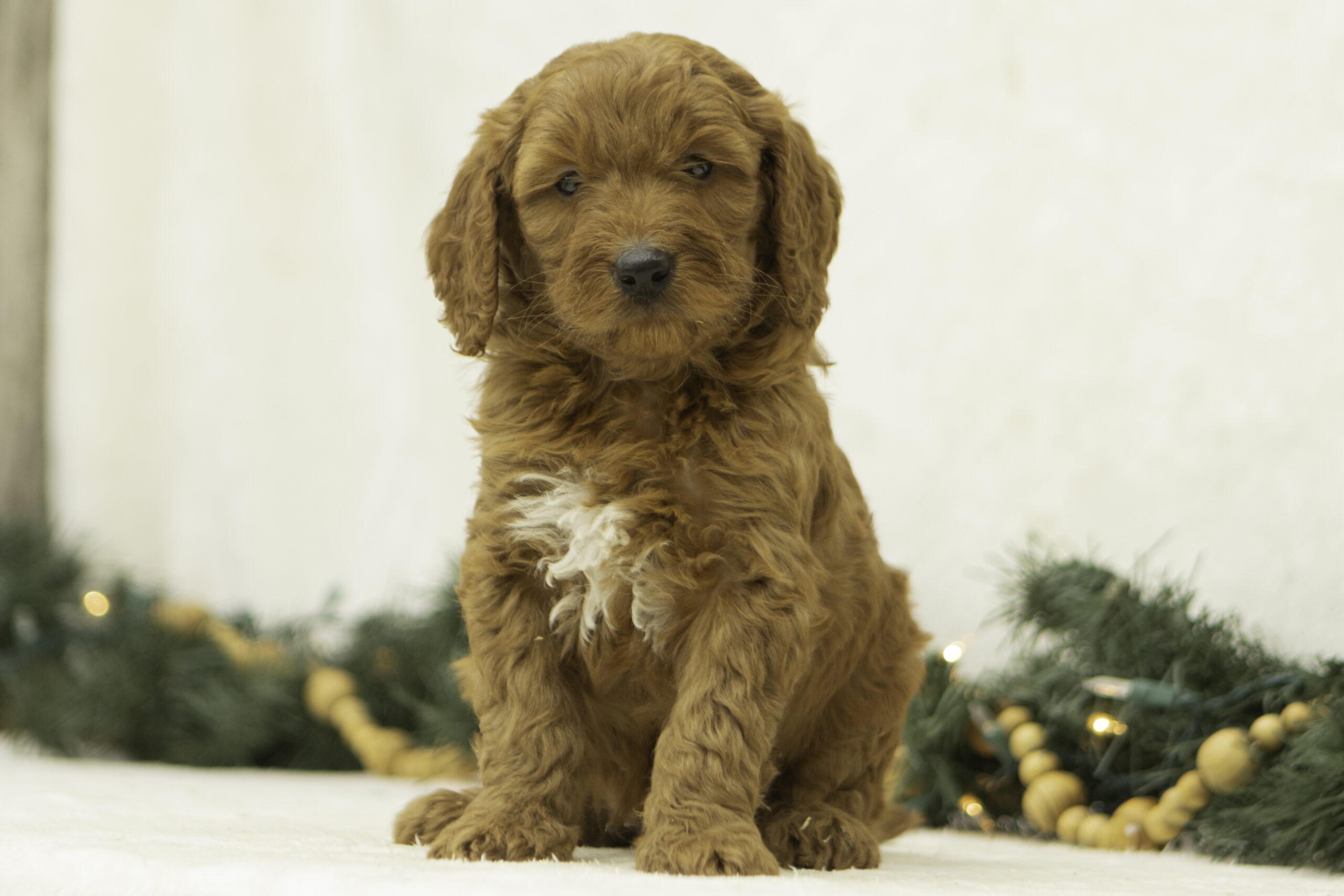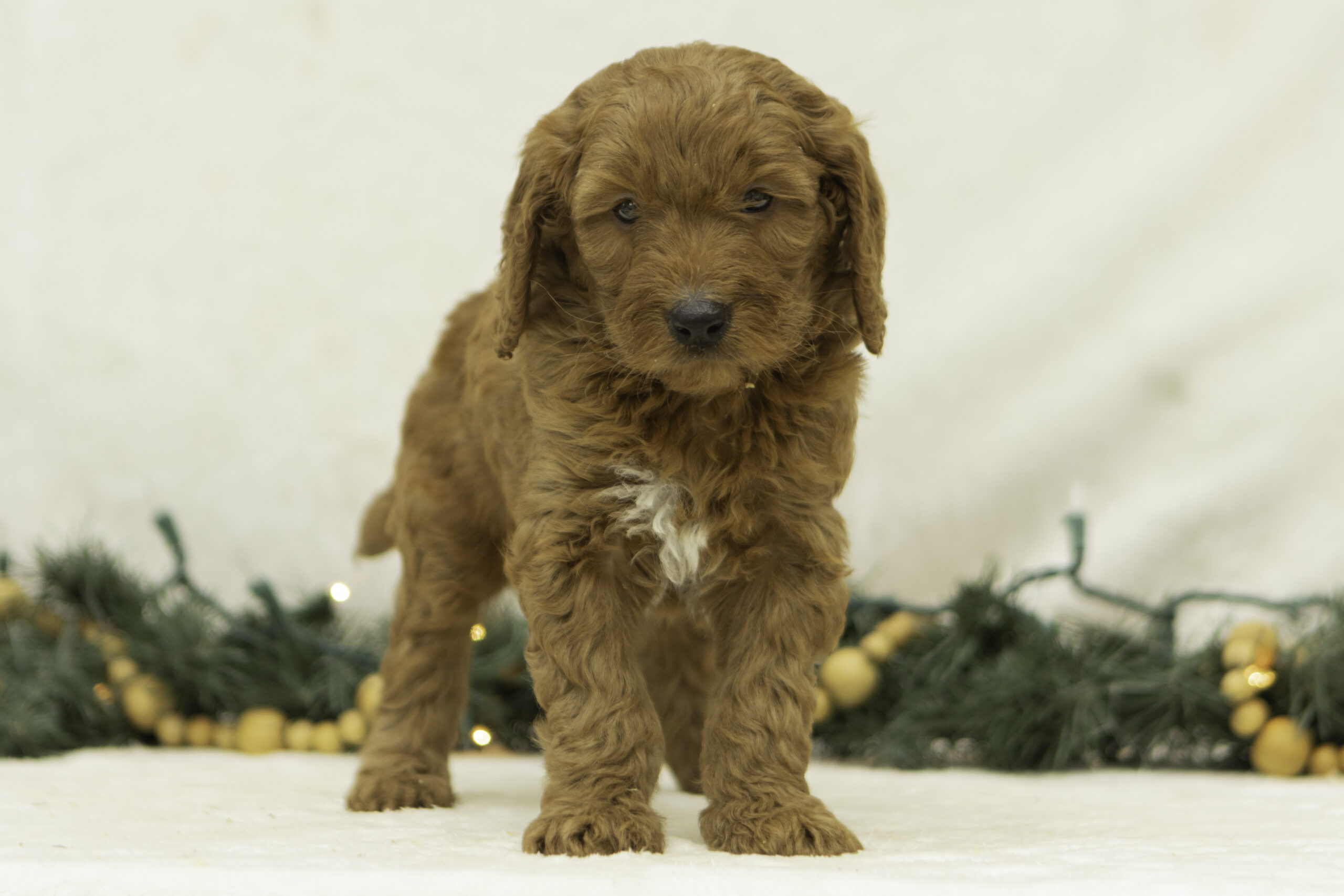Sage is a 54-pound F1 Goldendoodle with a brilliant mind and a loving, patient nature. Outgoing and curious, she loves to explore her surroundings and make new friends. Her intelligence and gentle temperament make her a wonderful companion for families seeking a smart, affectionate, and adventurous dog.