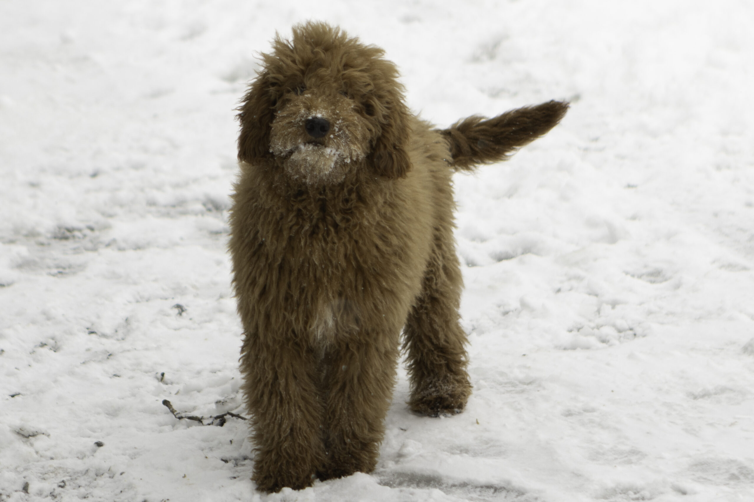 Sage is a 54-pound F1 Goldendoodle with a brilliant mind and a loving, patient nature. Outgoing and curious, she loves to explore her surroundings and make new friends. Her intelligence and gentle temperament make her a wonderful companion for families seeking a smart, affectionate, and adventurous dog.