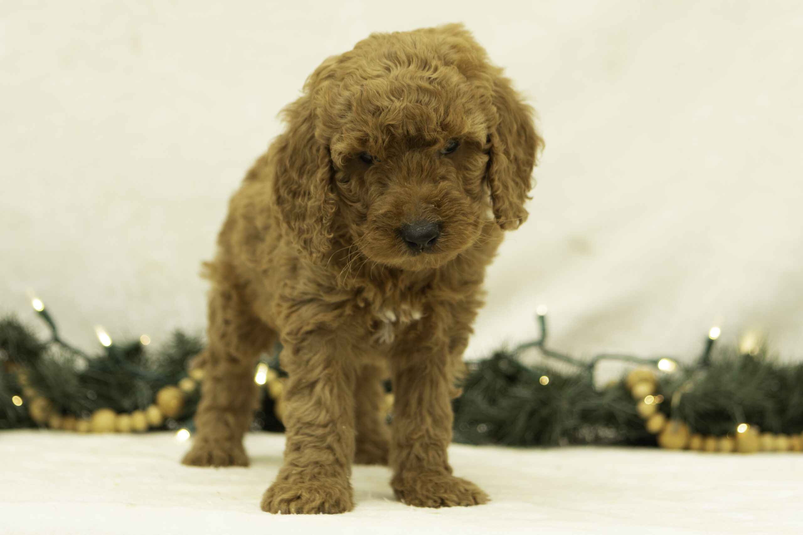 Lambo is a 38 lb Poodle with a sweet and loving nature. He’s incredibly smart and carries himself with a calm, gentle presence that makes him stand out. Though he can be a bit reserved at first, he quickly becomes affectionate and loyal with those he trusts. As a sire, Lambo brings a thoughtful and steady temperament to our program. His sire, Maserati, was imported from a renowned German kennel owned by an international judge and breeder. His pedigree includes multiple champions on both sides, with strong German and UK lineage. In Europe, Maserati is considered a Kleinpudel—also known as a Moyen Poodle—while the AKC registers him as a Standard Poodle. Kleinpudels are a medium-sized variety prized for their balanced structure and versatile temperament.