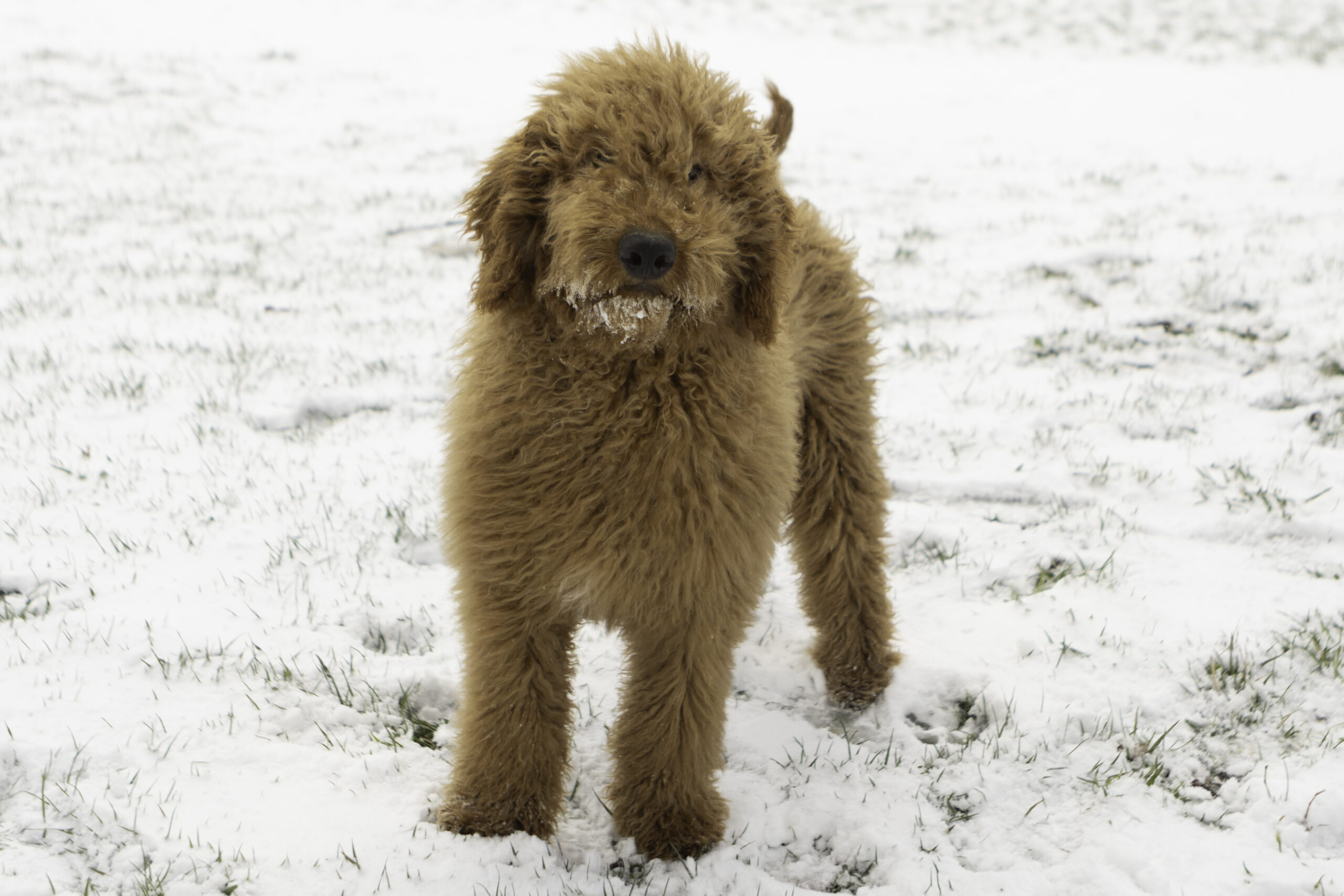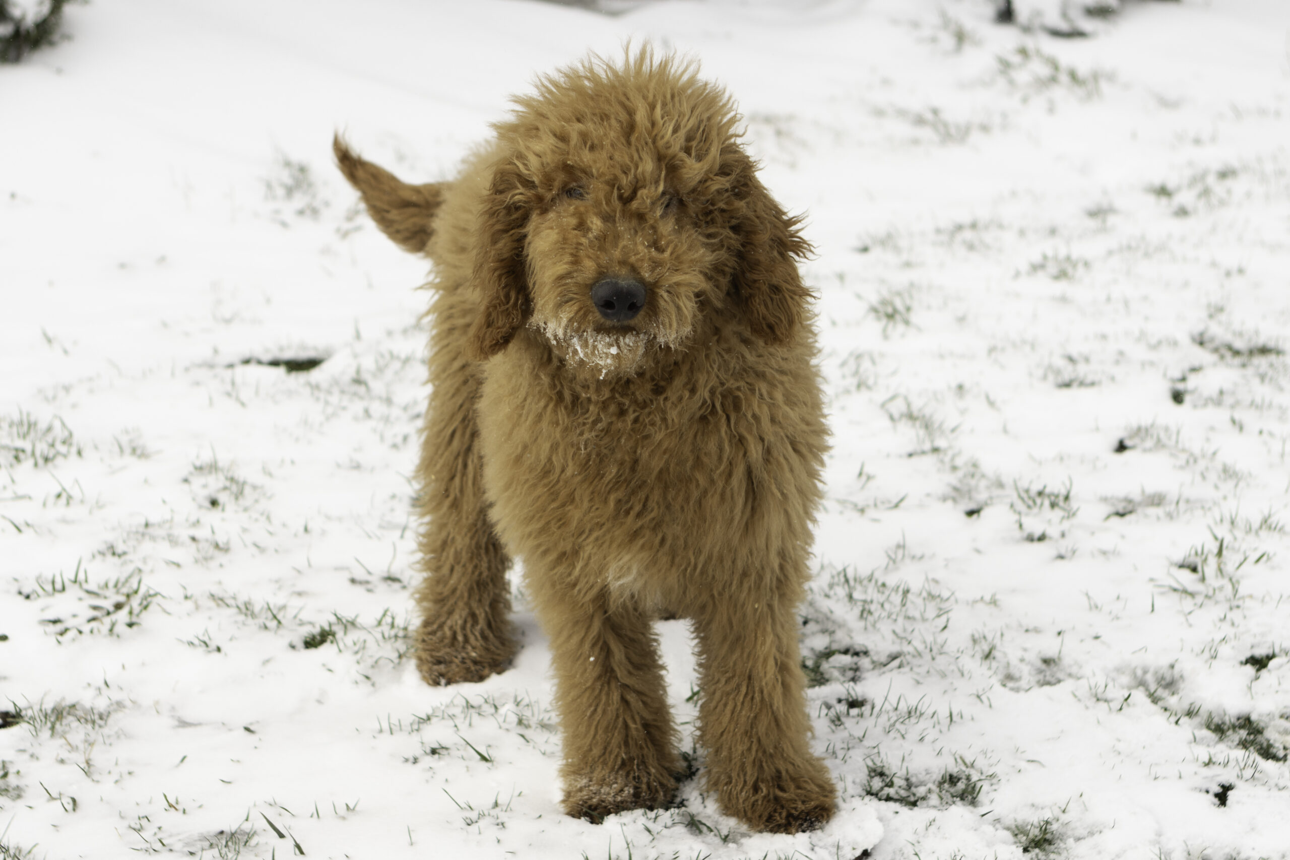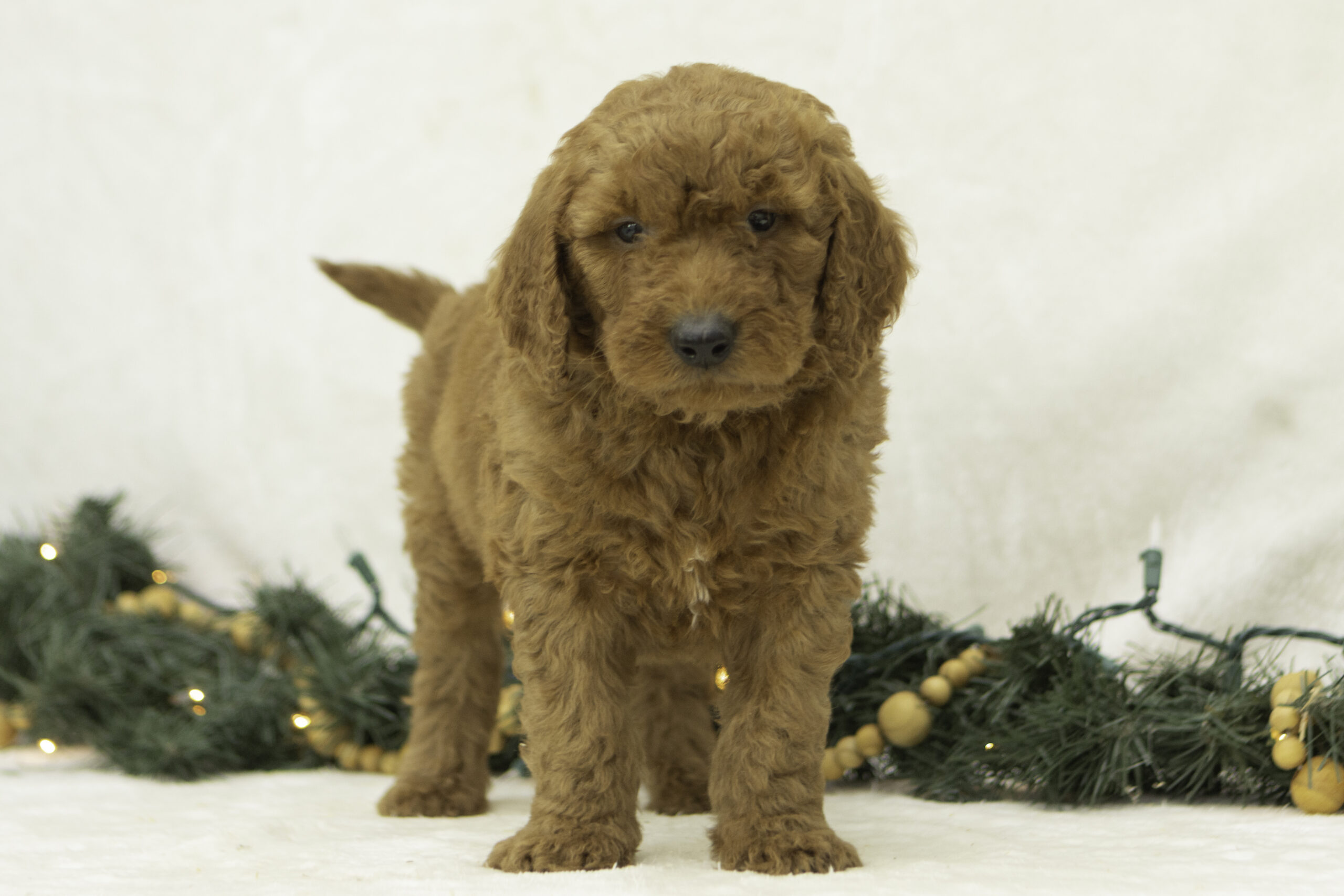 Sage is a 54-pound F1 Goldendoodle with a brilliant mind and a loving, patient nature. Outgoing and curious, she loves to explore her surroundings and make new friends. Her intelligence and gentle temperament make her a wonderful companion for families seeking a smart, affectionate, and adventurous dog.