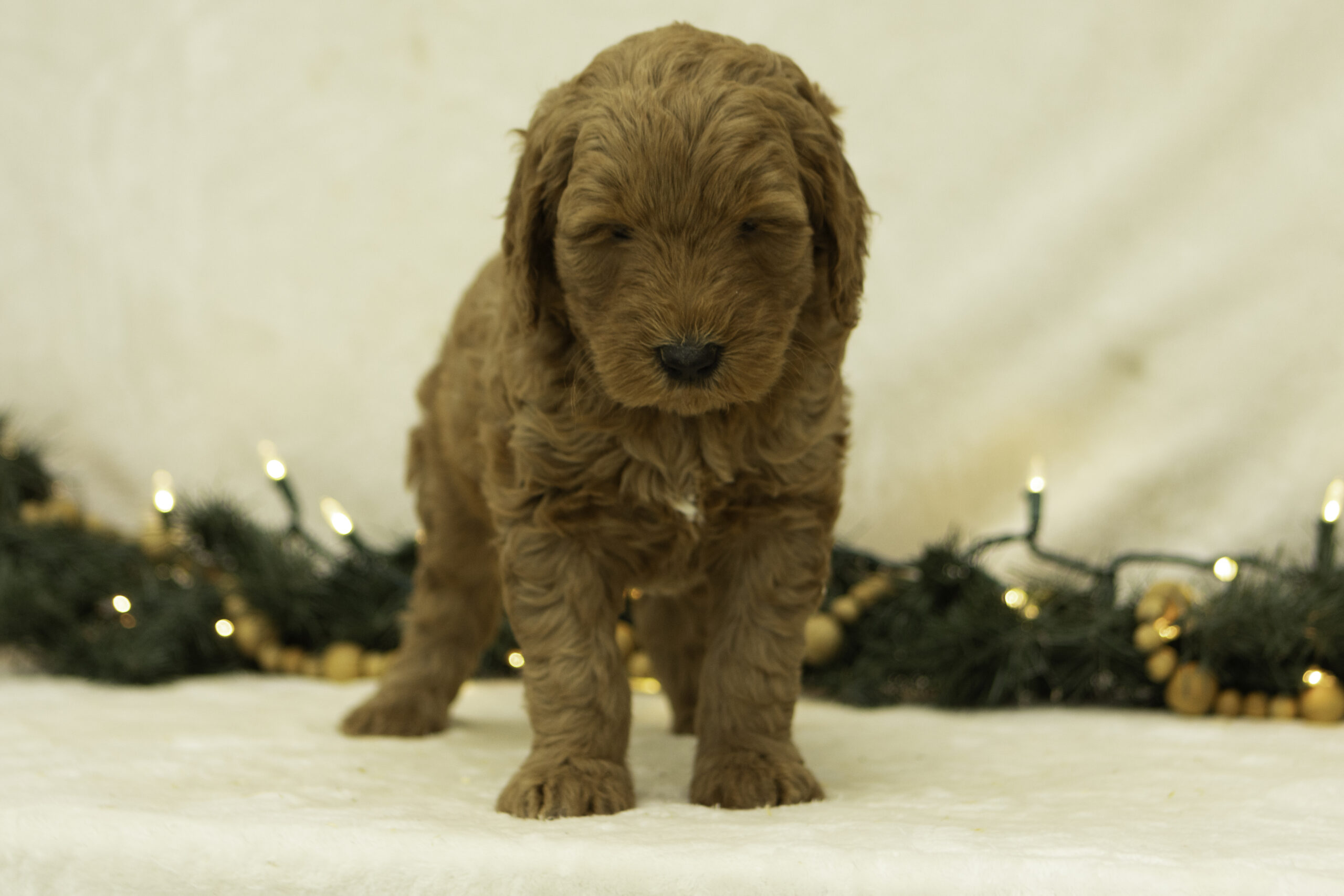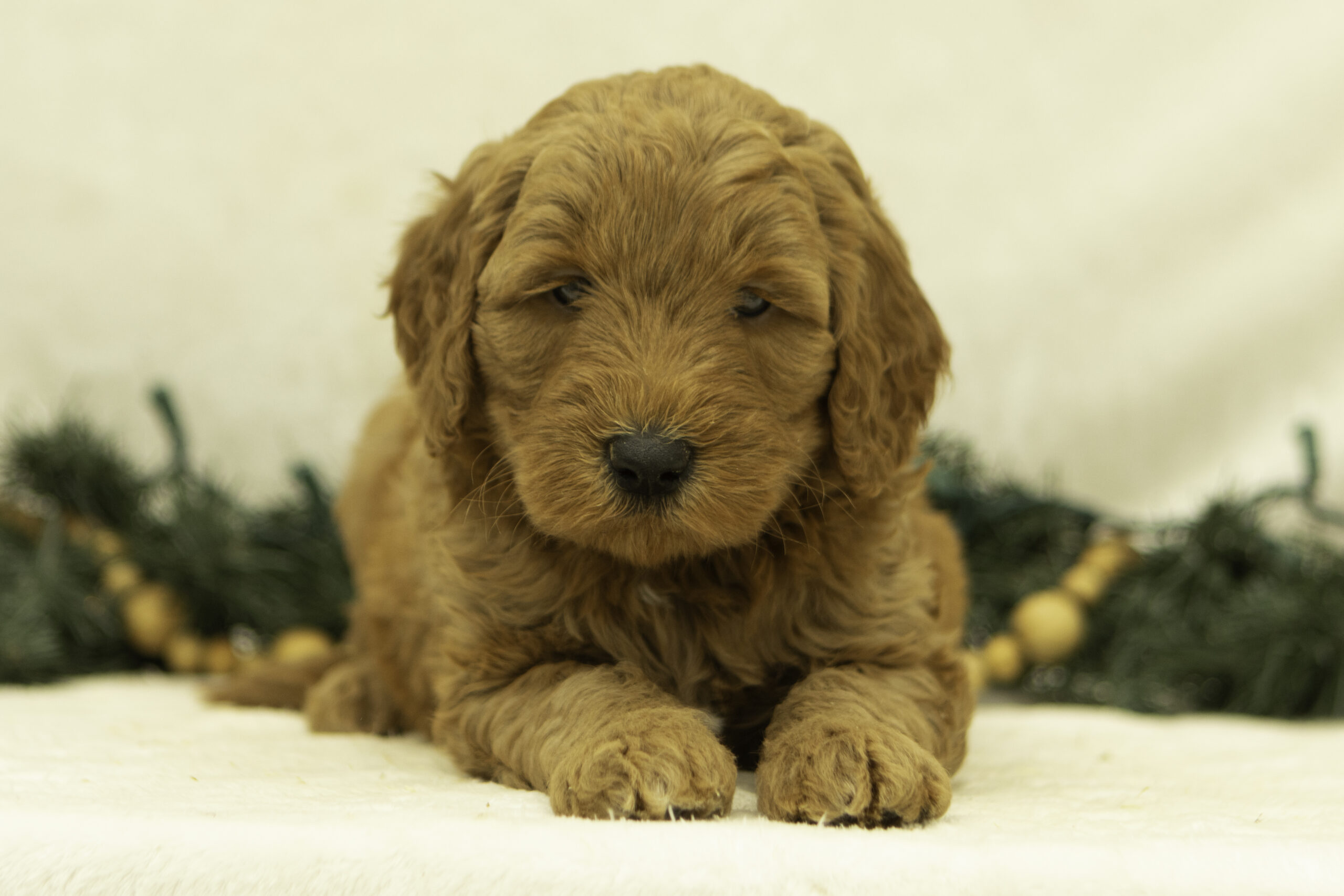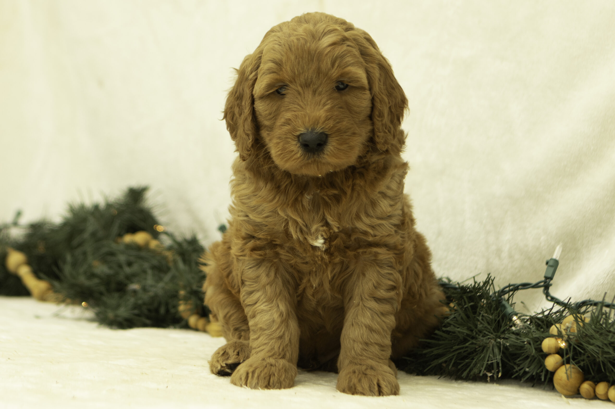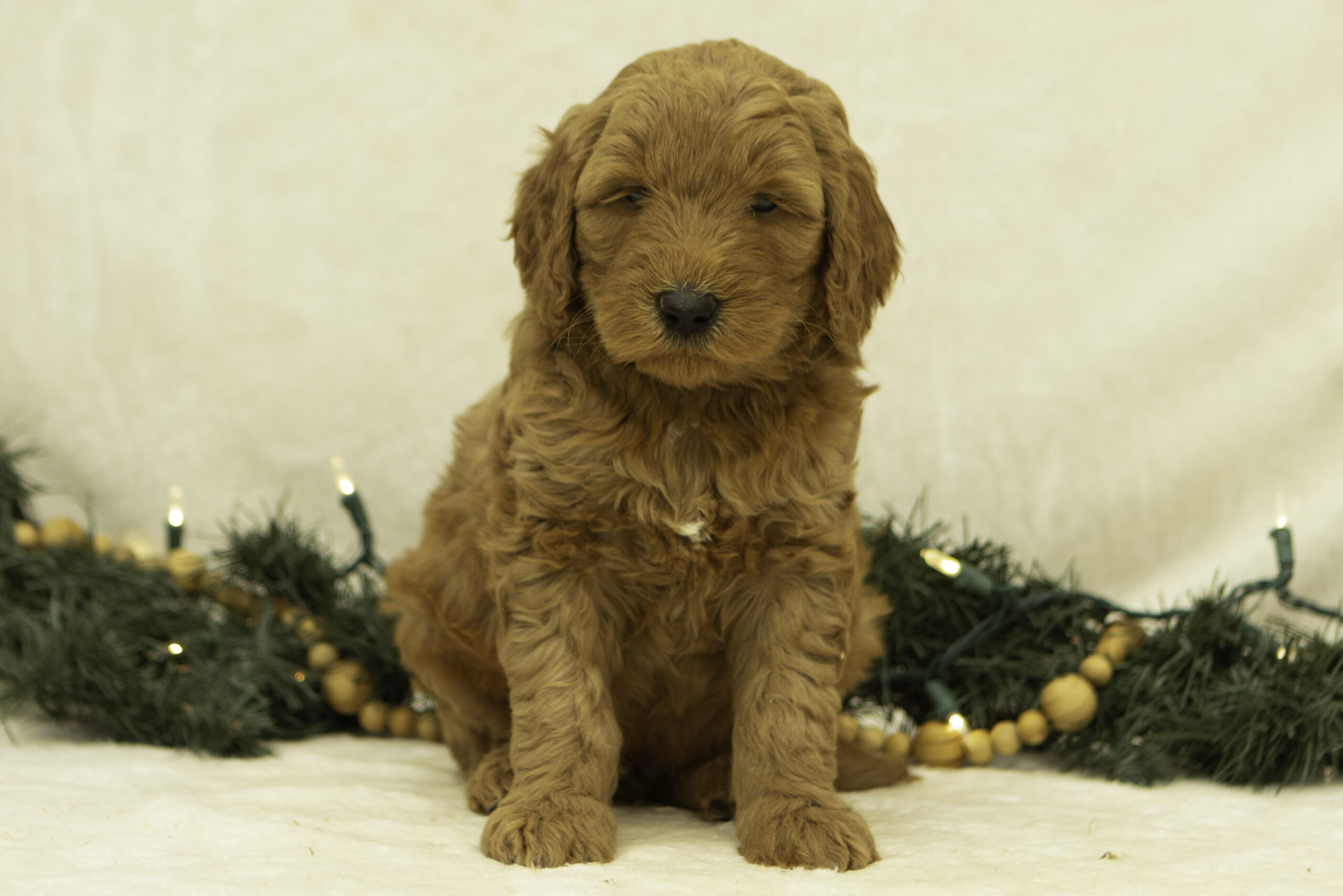 Sage is a 54-pound F1 Goldendoodle with a brilliant mind and a loving, patient nature. Outgoing and curious, she loves to explore her surroundings and make new friends. Her intelligence and gentle temperament make her a wonderful companion for families seeking a smart, affectionate, and adventurous dog.