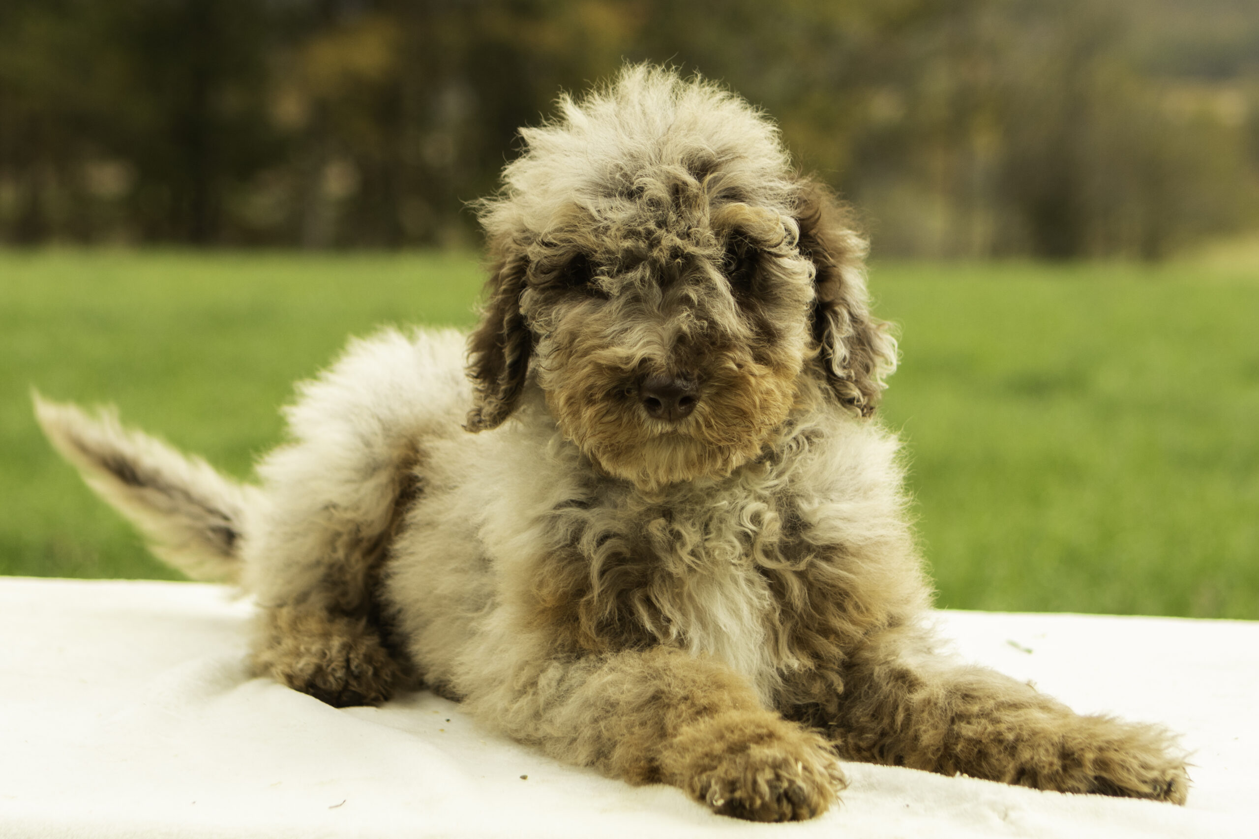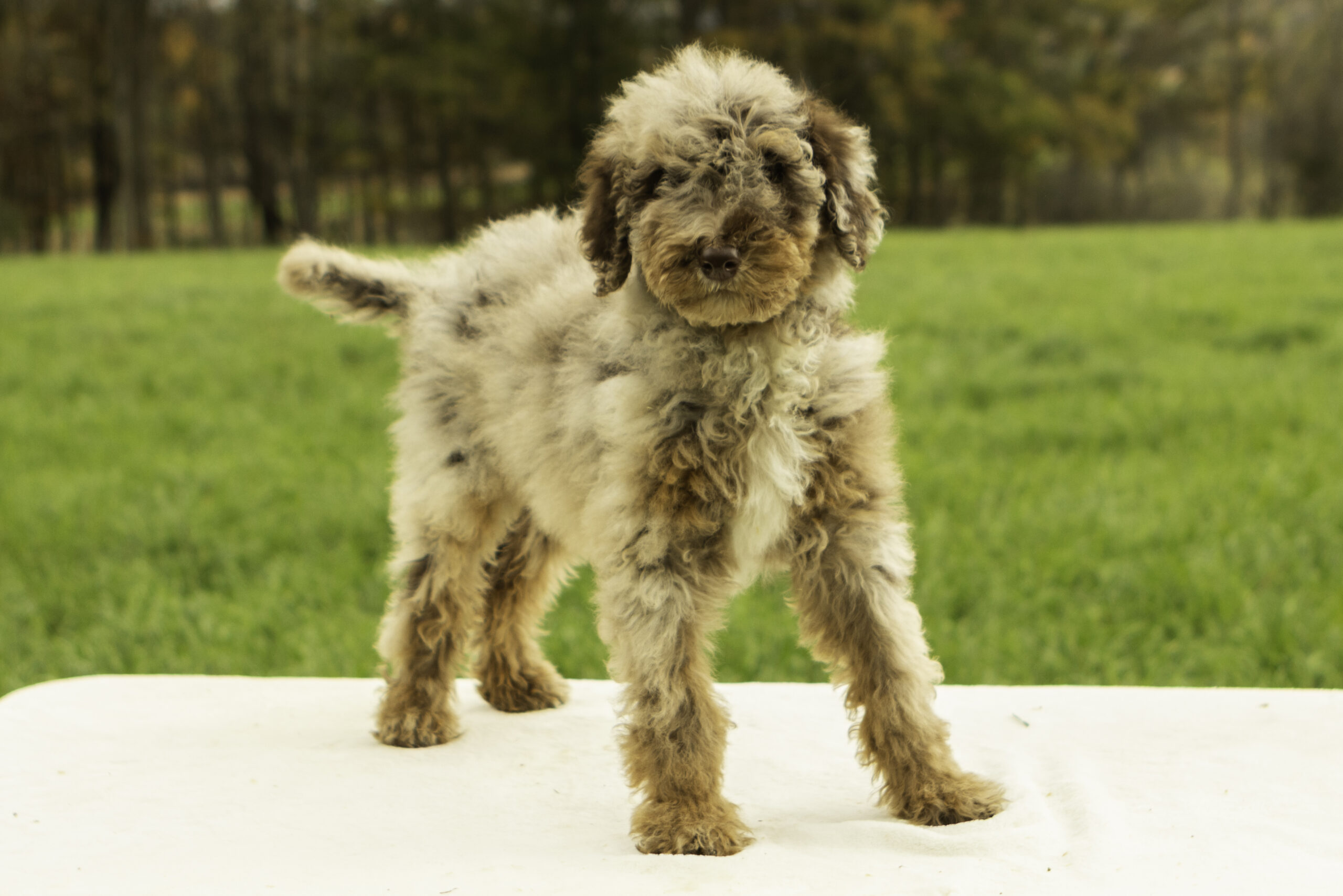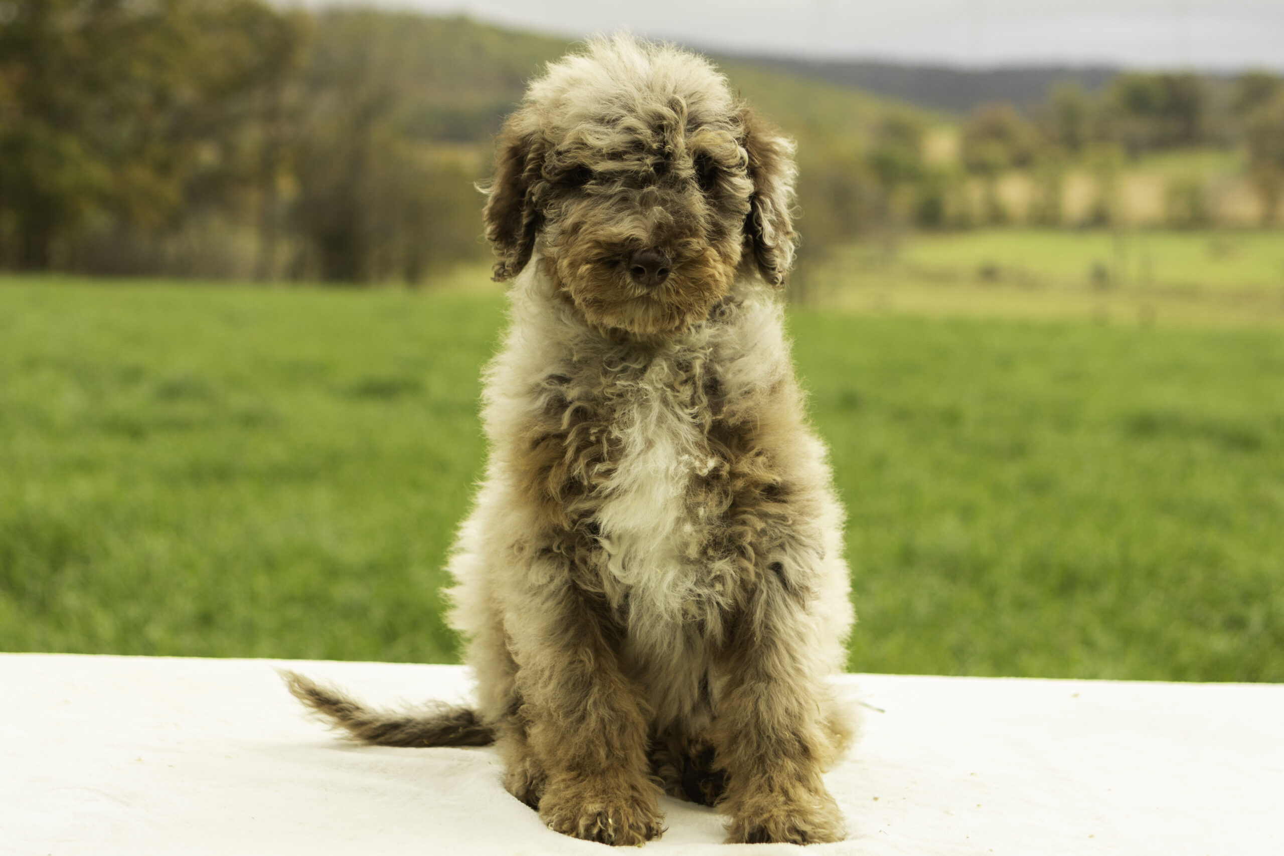 Lafayette is our handsome 63-pound chocolate Standard Poodle and an AKC-registered gentleman through and through. At 7 years old, he’s proven himself as a phenomenal sire, producing exceptional puppies with outstanding temperaments. Lafayette is the definition of a “good old boy”—friendly, loyal, calm, and wonderfully laid-back. He’s the kind of dog that wins everyone over with his easygoing nature and steady presence.
