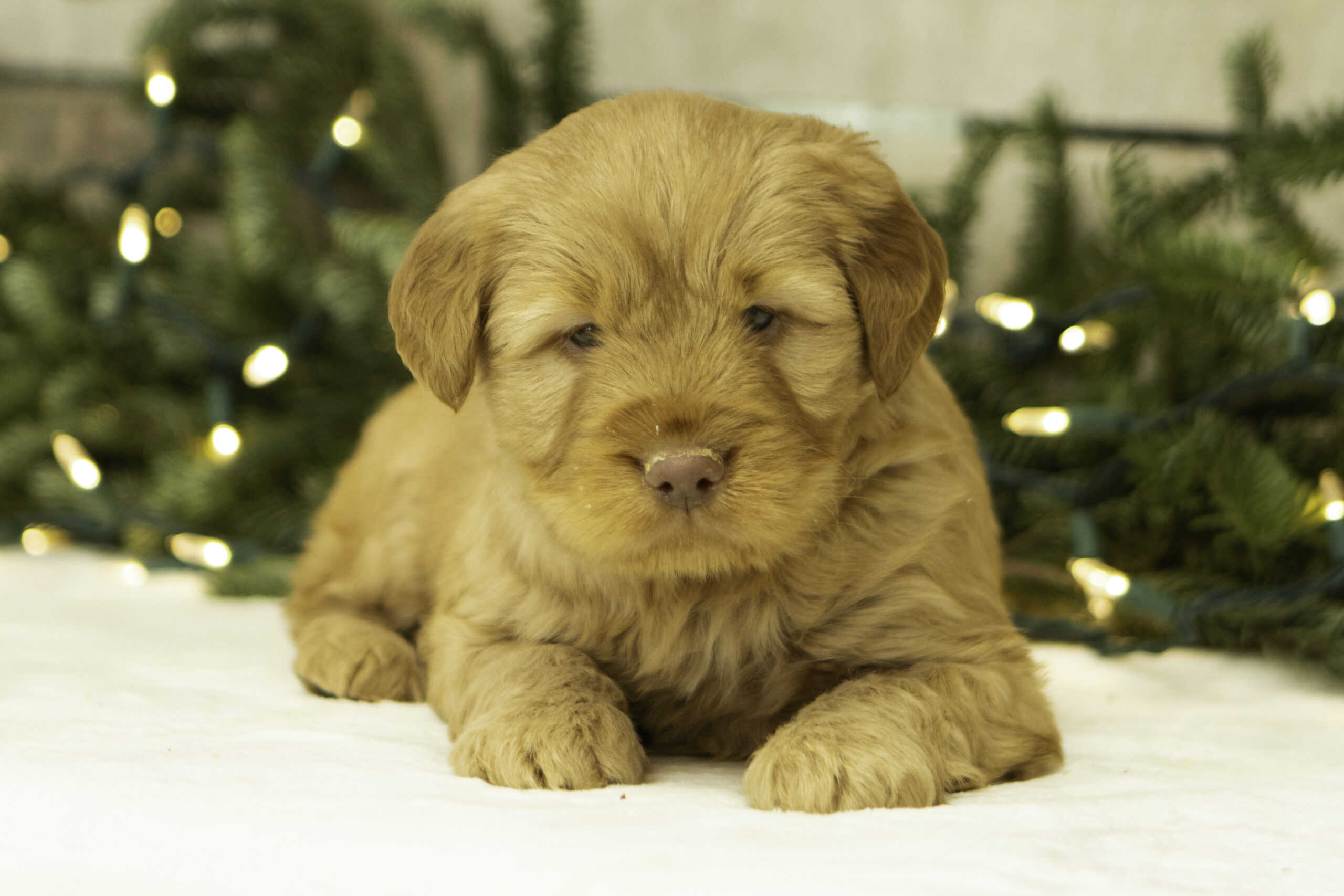 Ziggy is a friendly, laid-back F1 Goldendoodle who weighs 57 lbs. She brings a calm and easygoing presence wherever she goes. Ziggy has a relaxed personality and loves nothing more than lounging by your side or enjoying a quiet moment in the sunshine. Her gentle nature makes her a wonderful mama.