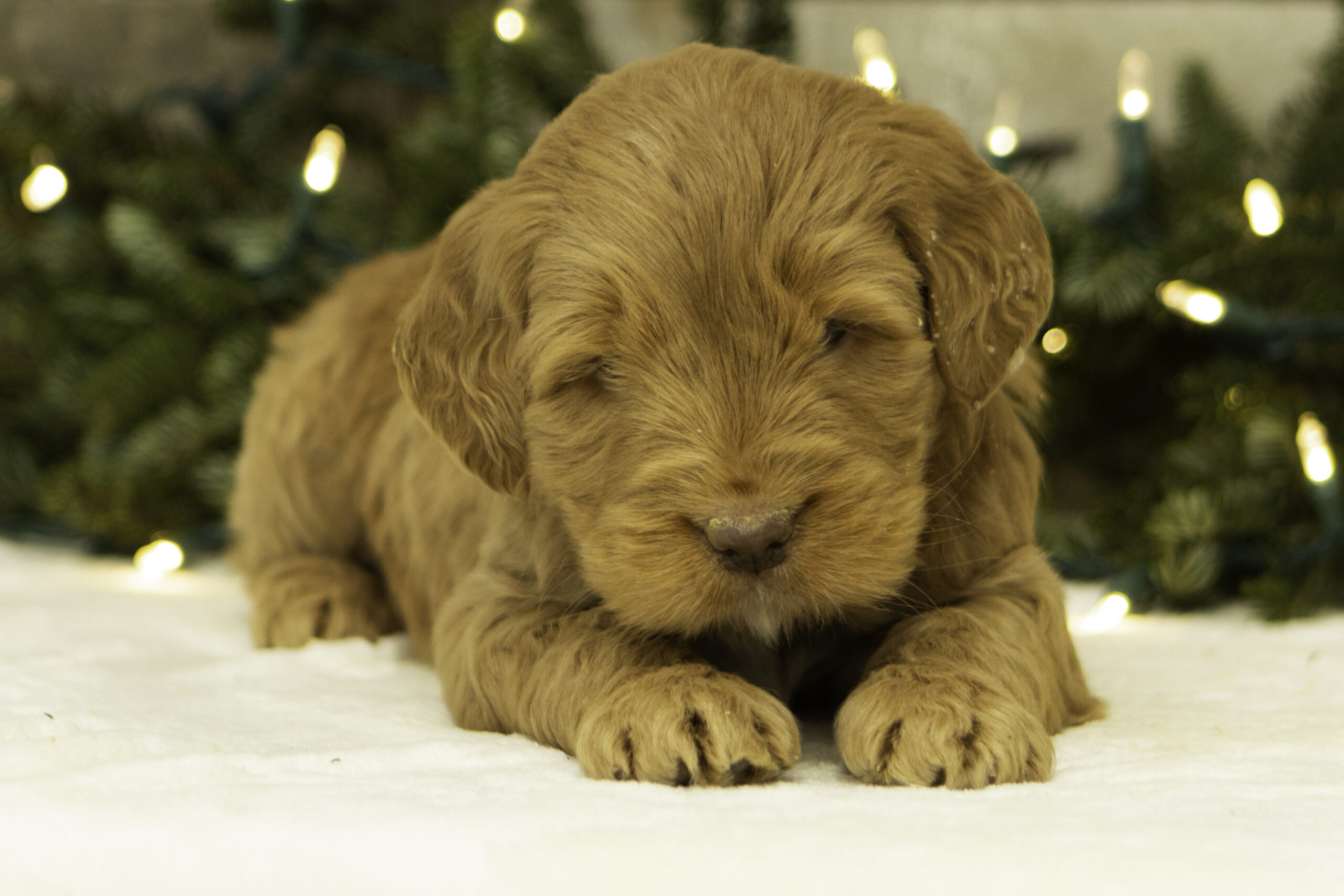 Ziggy is a friendly, laid-back F1 Goldendoodle who weighs 57 lbs. She brings a calm and easygoing presence wherever she goes. Ziggy has a relaxed personality and loves nothing more than lounging by your side or enjoying a quiet moment in the sunshine. Her gentle nature makes her a wonderful mama.