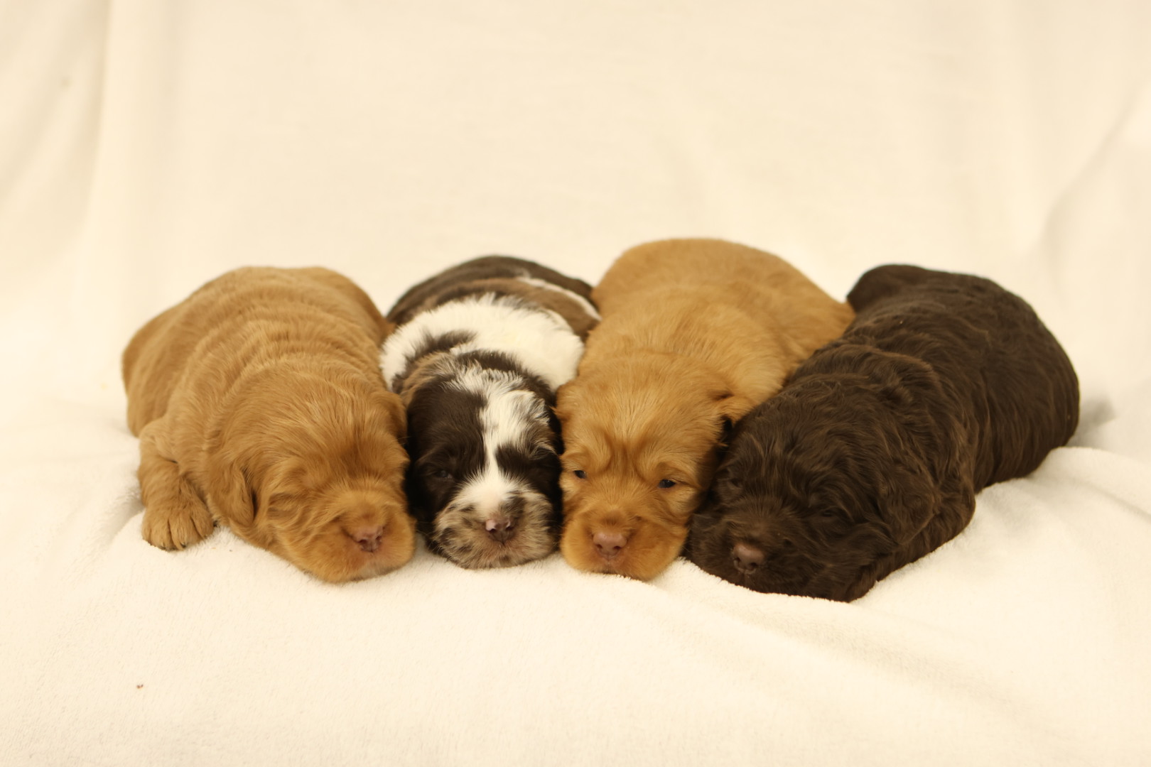 Ziggy is a friendly, laid-back F1 Goldendoodle who weighs 57 lbs. She brings a calm and easygoing presence wherever she goes. Ziggy has a relaxed personality and loves nothing more than lounging by your side or enjoying a quiet moment in the sunshine. Her gentle nature makes her a wonderful mama.
